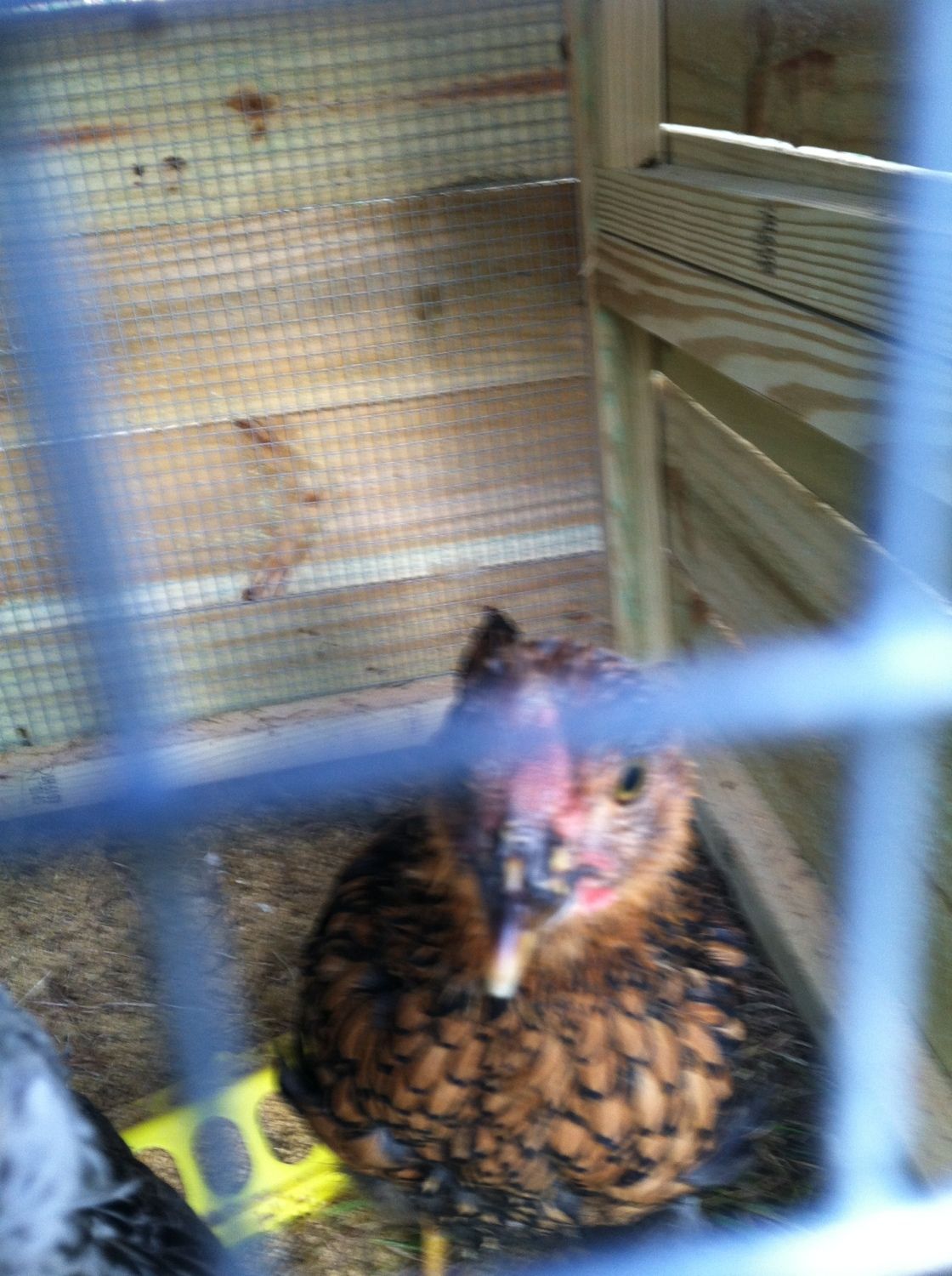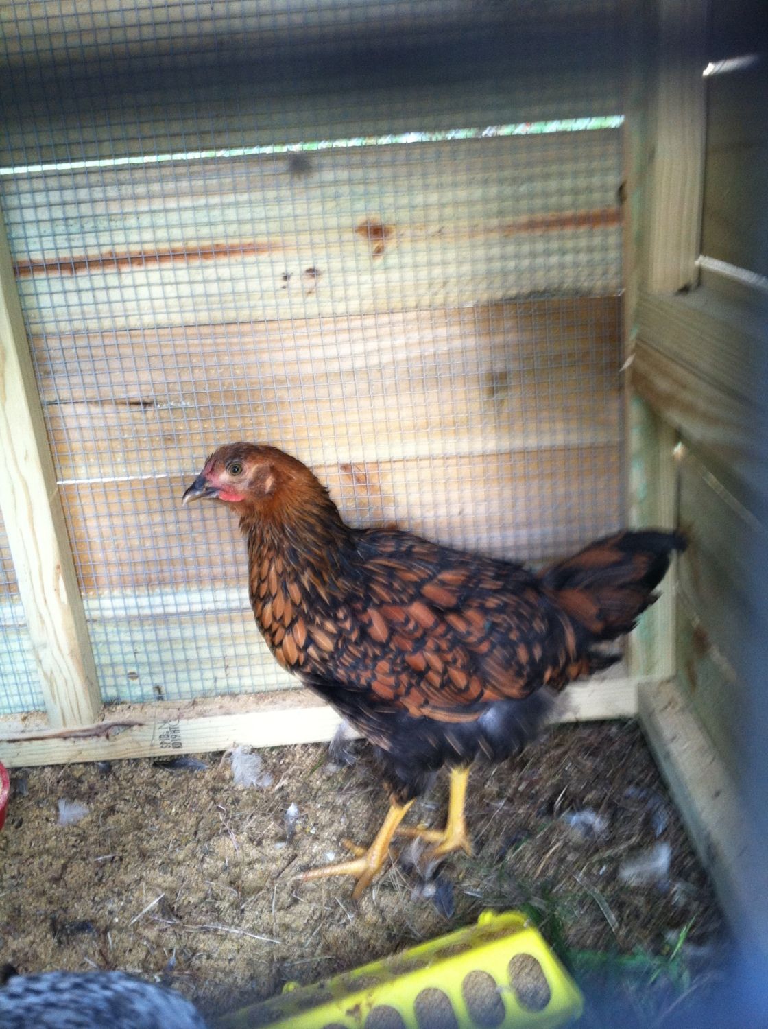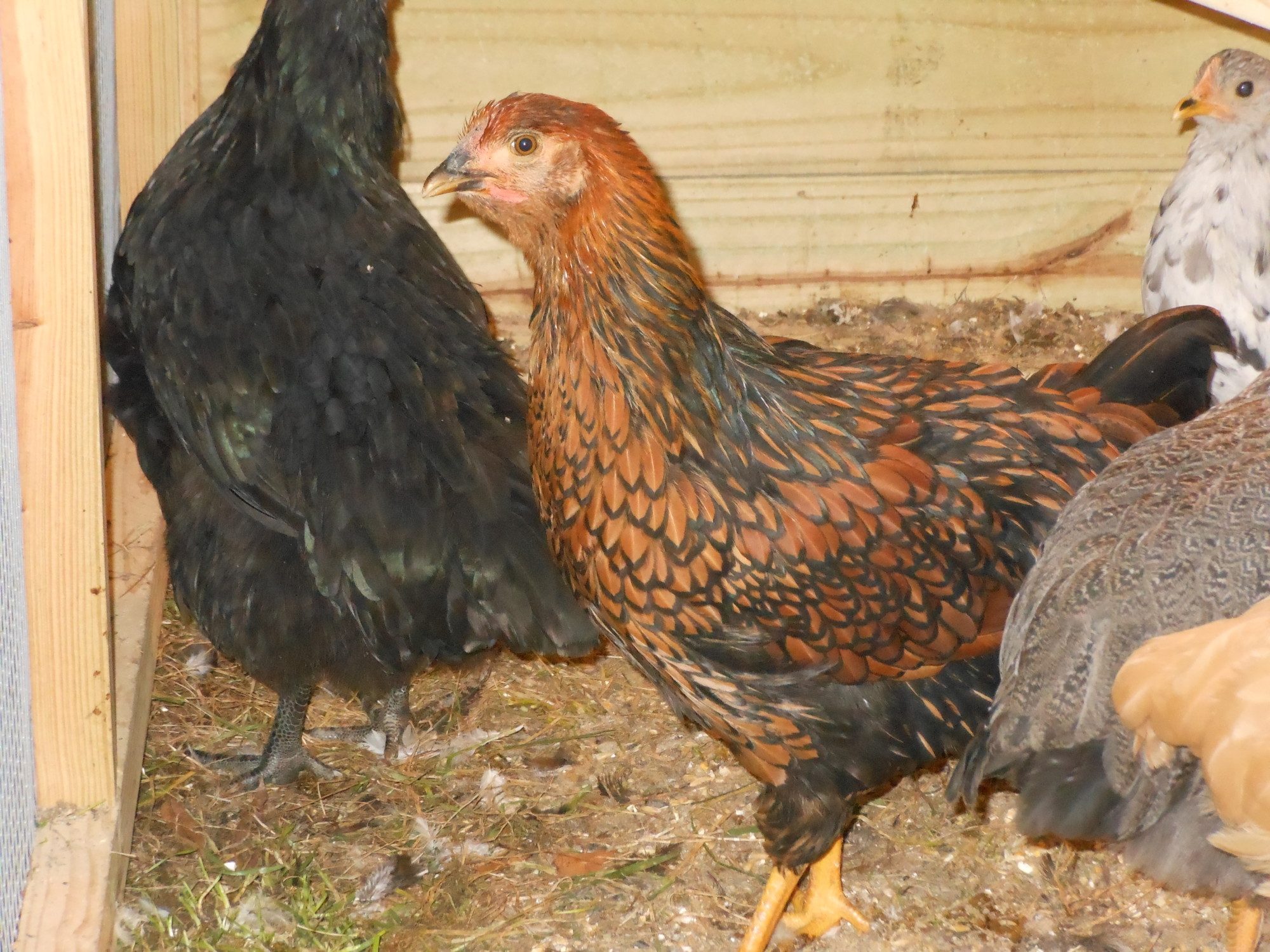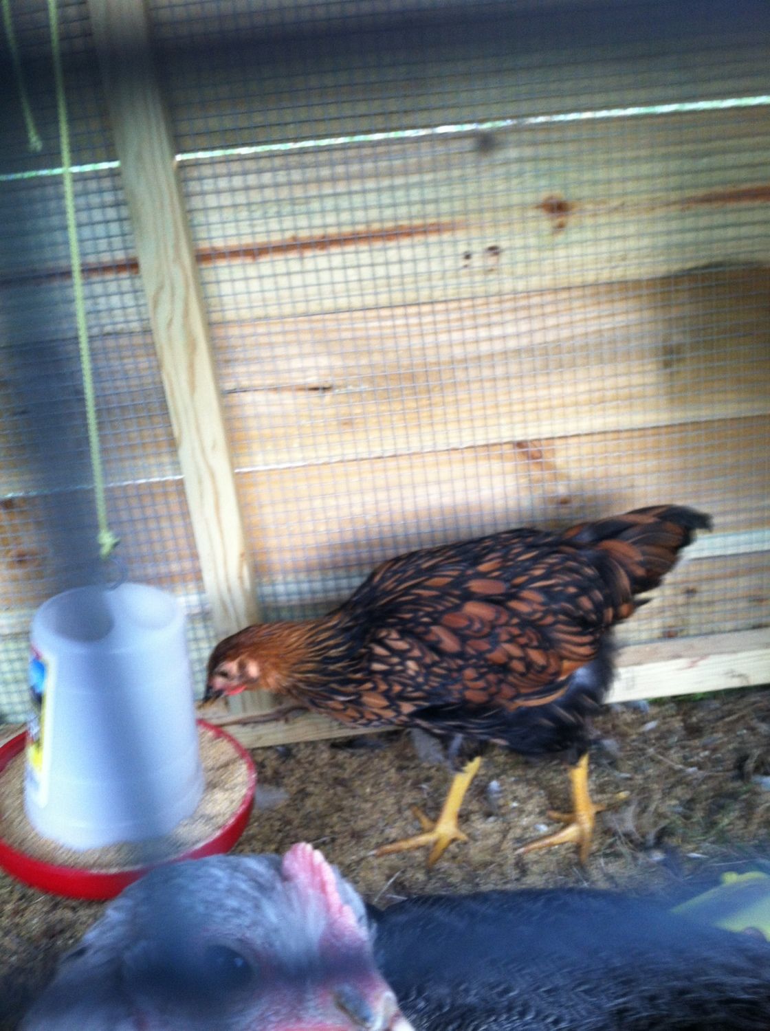 Now I am thinking hen. Took these pics last night and it still has no comb and the only issue is those tail feathers. My SLW were the same way and both are hens. If it was a roo I seriously doubt it would have that much lacing at this point.