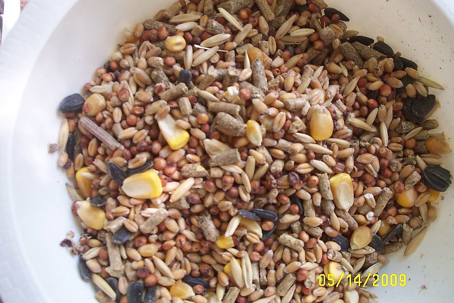 ne thing that we do occasionally is hard boil some eggs and when they've cooled just use a potato masher and crunch them up shells and all... They really love that and it is a big protein booster and the shells help replace some calcium also!