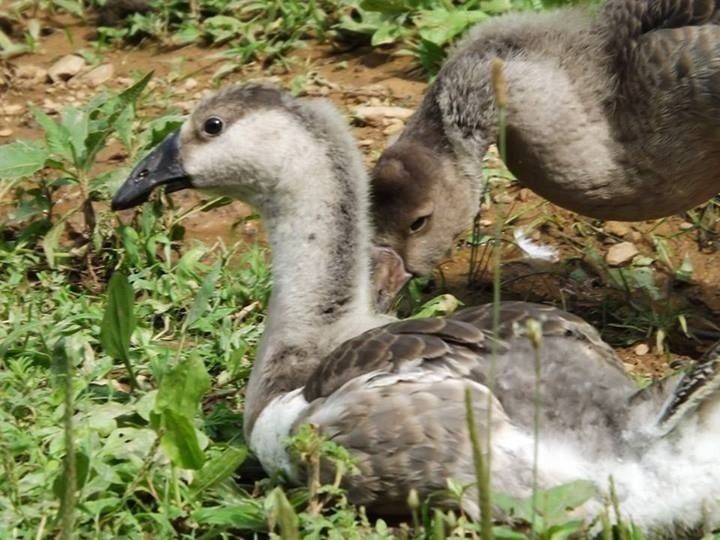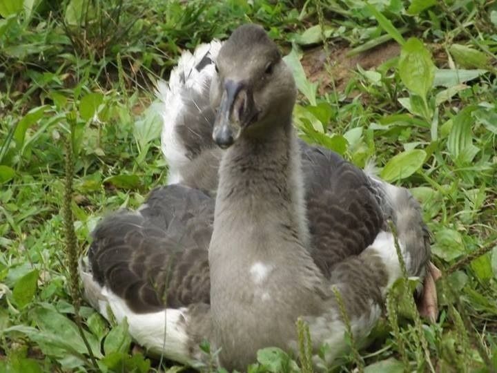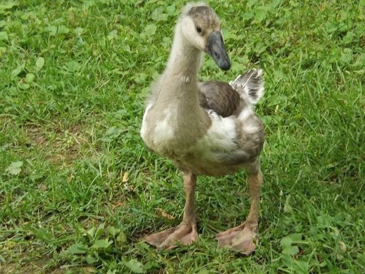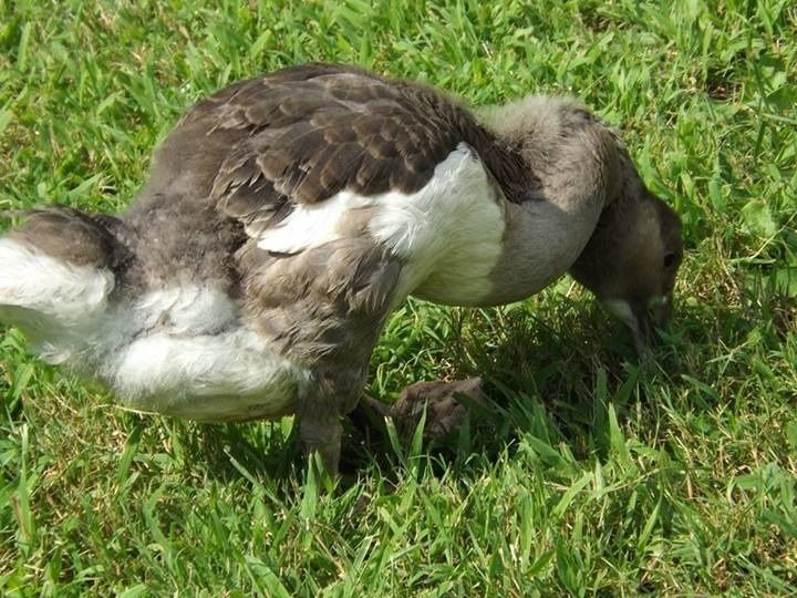 She was a wild goose rehab project as she was hatched with mobility problems and abandoned by the mother. But no apparent problems after the mobility issues were cleared up.
