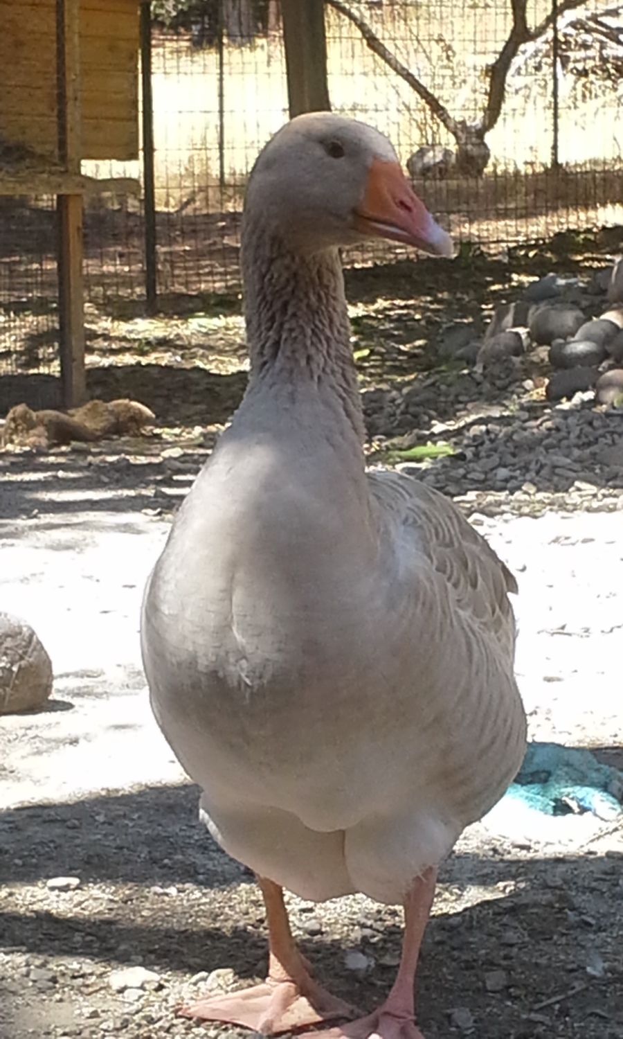 They are beautiful and well proportioned as well. I need to get some new pics of my Buff girl she will be 5 months end of next week. But i can tell you Gus is acting very normal. he is becoming a gander lol My gander grew up with ducks and chickens till he was over 5 yrs old never had any problems till I added his mate then he got very protective of her but I still never saw him hurt anyone. Then this year we added 2 goslings the Buff and Toulouse and my goodness all H broke loose, If a chicken gets close they will surround her and thank goodness I haven't seen them actually hurt one when they do this but on their own they will grab a chicken and not let go they will also do this to a duck if one happens to get in their space which is pretty wide area, but I would not let mama and babies whether it be chicks or ducklings be in the same area as the geese, they can and probably would kill them, Now for their own babies, you couldn't want better parents. The gander will protect with his life and will be a very devoted papa, Mama too. My gander took on the role of papa goose to many a Muscovy duckling before I added more geese and he figured out what he was. I do worry about my chickens though but so far they have managed to keep away from the geese. Those that have been caught seem much more aware of how close they are too. It's funny because if someone starts to get close the looks those 2 gosling who are almost 5 months old give to the chickens or ducks well if looks could kill they'd all be dead. lol They have gone from the gruesome twosome to the 4 crazed bullies. If I see them acting ugly I now bend at the waist and open my arms and act like i am going to pick them up, breaks their mind set for the moment since they are scrambling to getaway from me. lol