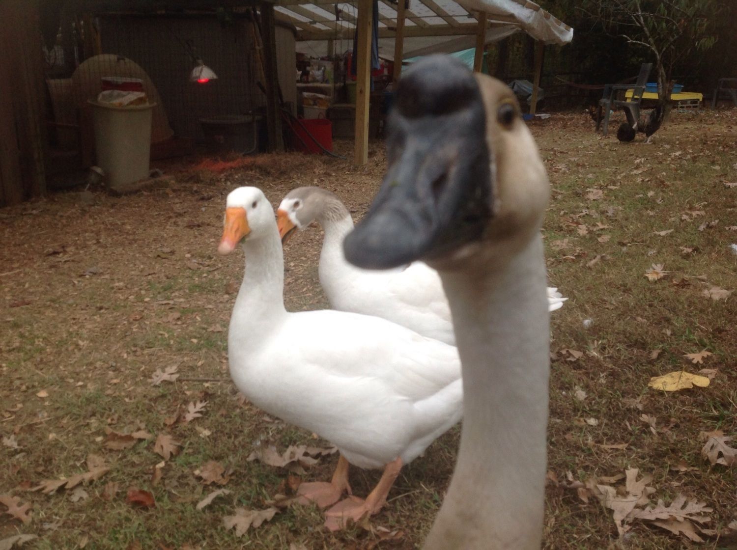 Virginia Tech has a pretty decent Veterinary medicine program. They are located in Blacksburg but they have a satellite campus in Leesburg which is in Northern Virginia. You might give them a call and just see if they can do anything for Gabby. If it has been four weeks she may be o.k. but it would not hurt to check. I don't know how long the rope was but there is the chance of it getting twisted around something and causing more serious problems in the future. Your geese are lovely but Gabby takes the cake on curiosity. She almost looks like a cartoon character that you PhotoShopped in.
