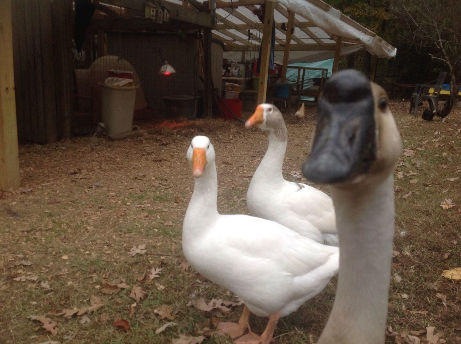I have a new goose name Angel (the white & grey one), that's approx 1-2 years old. She's half African and half Embden and has totally fallen in love with my Embden Gander "Em". Em is young at 8 months old. I was wondering how old are ganders when they begin to mate? The female has actually tried to show him, got on his back yesterday, but he really doesn't seem to care and She won't leave him alone! I can understand why, he is a real sweetheart and who wouldn't fall in love with those baby blues! They seem to be bonding and go off a lot on their own, which is so cool to watch two lovely geese fall in love! Oh, and of course Gabby is always first to be in the picture.. Lol