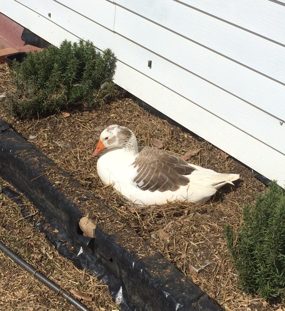 This is Isabella and she has three eggs in my Rosemary. So If I fail I may still have goslings.