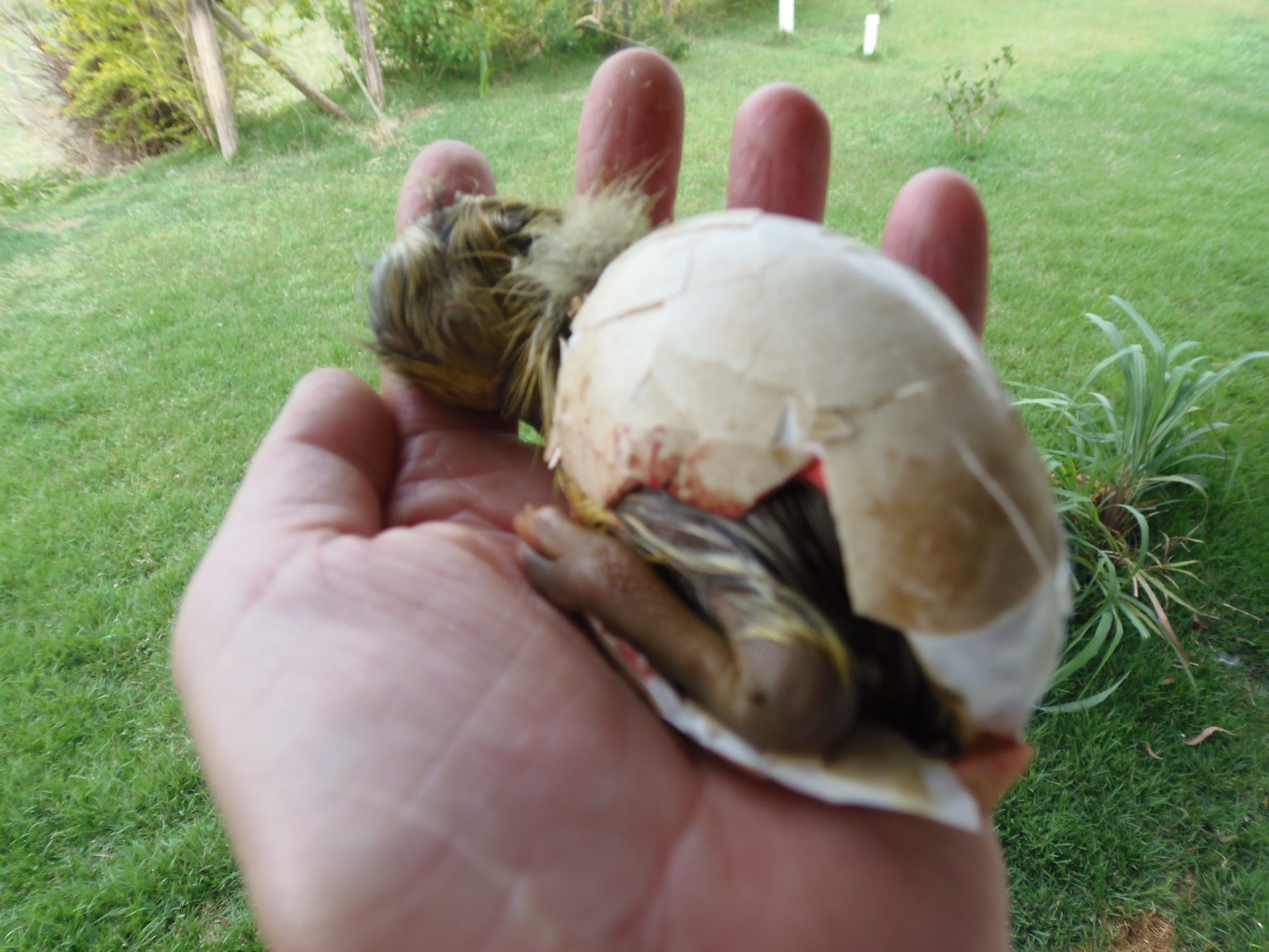 Look what I found in the goose nest....she didn´t kill it, but she certainly doesn´t like it, hissing and so on, it didn´t look too bright, and looking at it I think she may have just squashed it if I´d left it there, so I took it out. Nearly became an egg sandwich! I´m hoping she´ll hatch out more, and maybe she´ll be better with those. I´ll go back down and see if I can hear any noises coming from more eggs. This one´s drying out nicely under a lamp now. Silly goose.