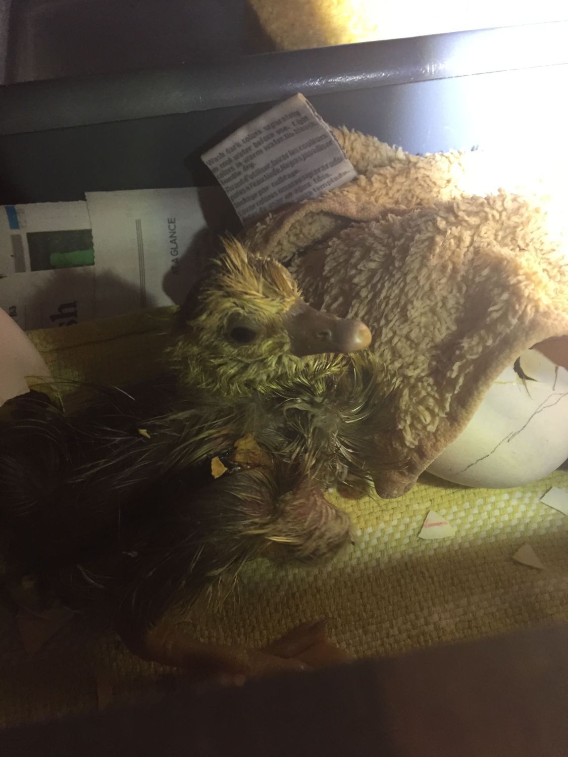 The first one is still attached?? They will flop around at first. It is ok to handle if need but keep them warm. If still attached to bottom of egg, leave it be for awhile.