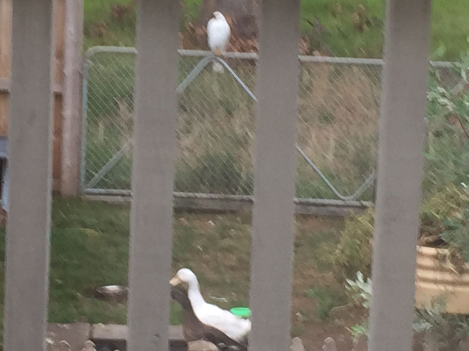 The pond is only the size of a bathtub so I am figuring they are following their instinct to stay in water where a bird of prey won't be able to land and catch them. But I don't think they've thought it through! The obvious thing to do would be to run into the Quack House or the jungle. Lady Goshawk (as I've christened her) came back later and perched on the chicken house. Chickens had definitely headed for the jungle by then.