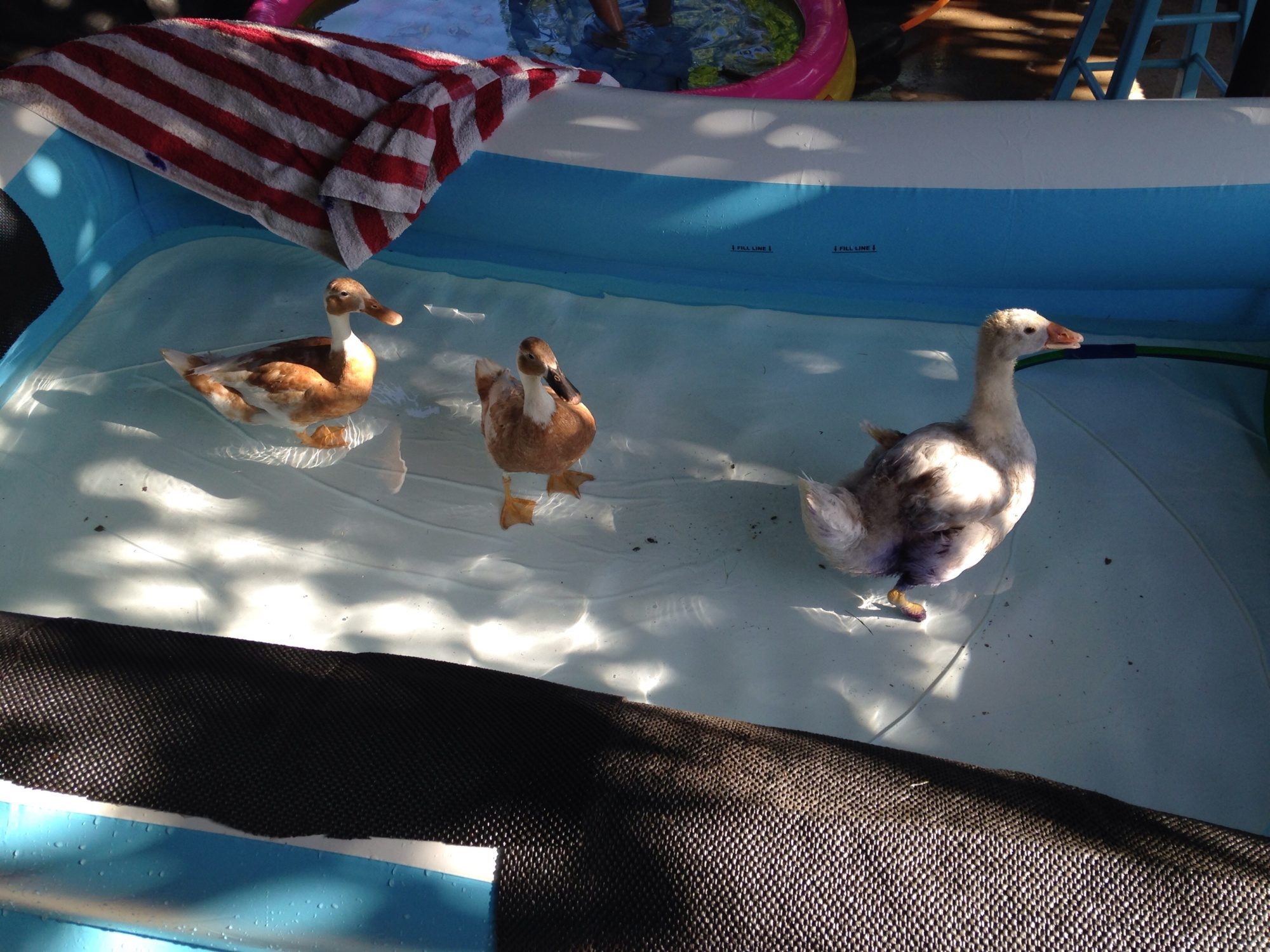 Hobart is desperate for company so I caved in and let him spend time with two of my runner girls. They are all afraid of him when he walks because of his hobble! But in the pool they are none the wiser!