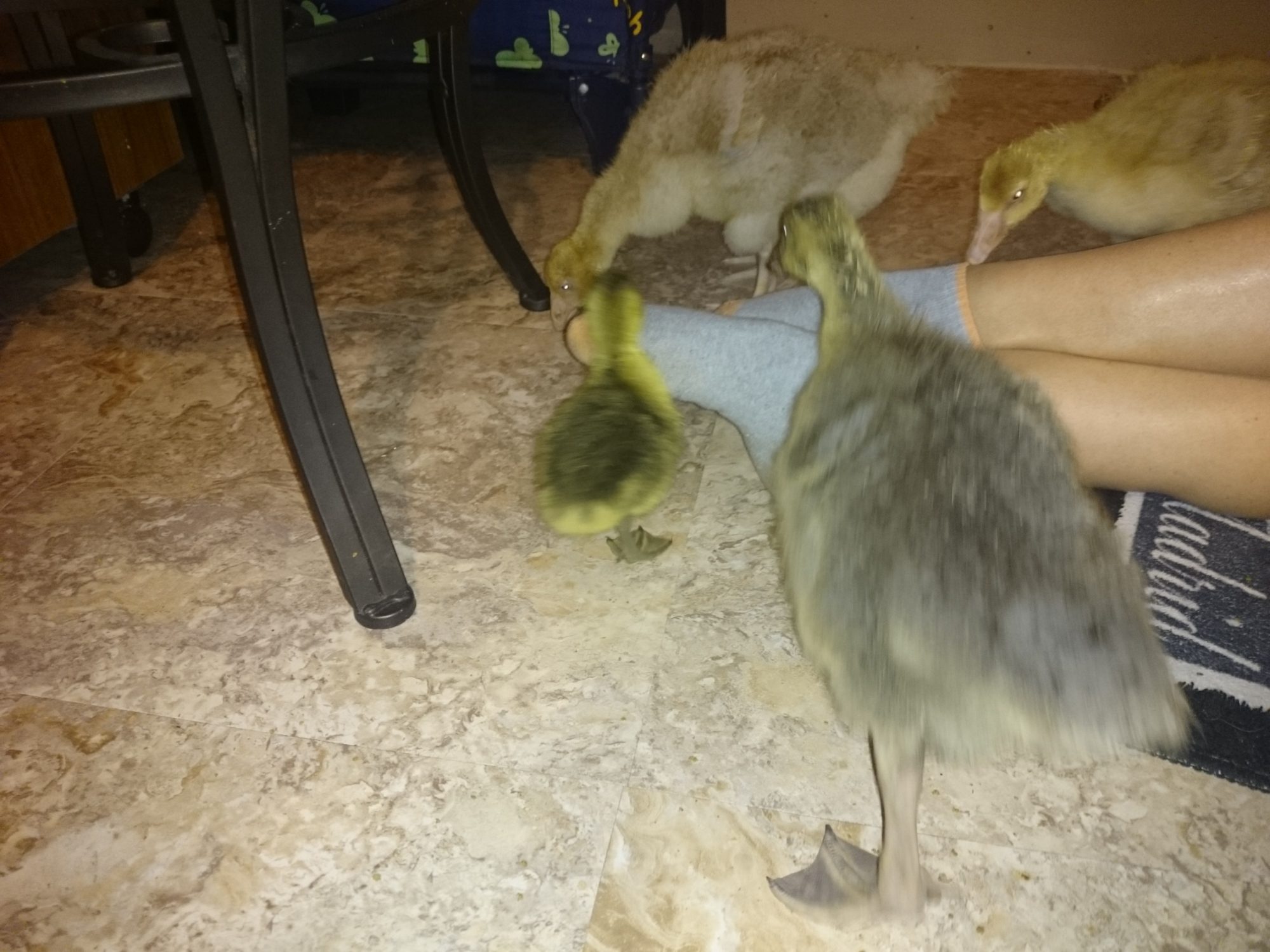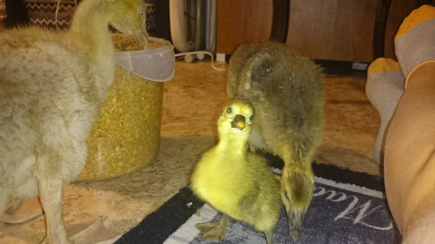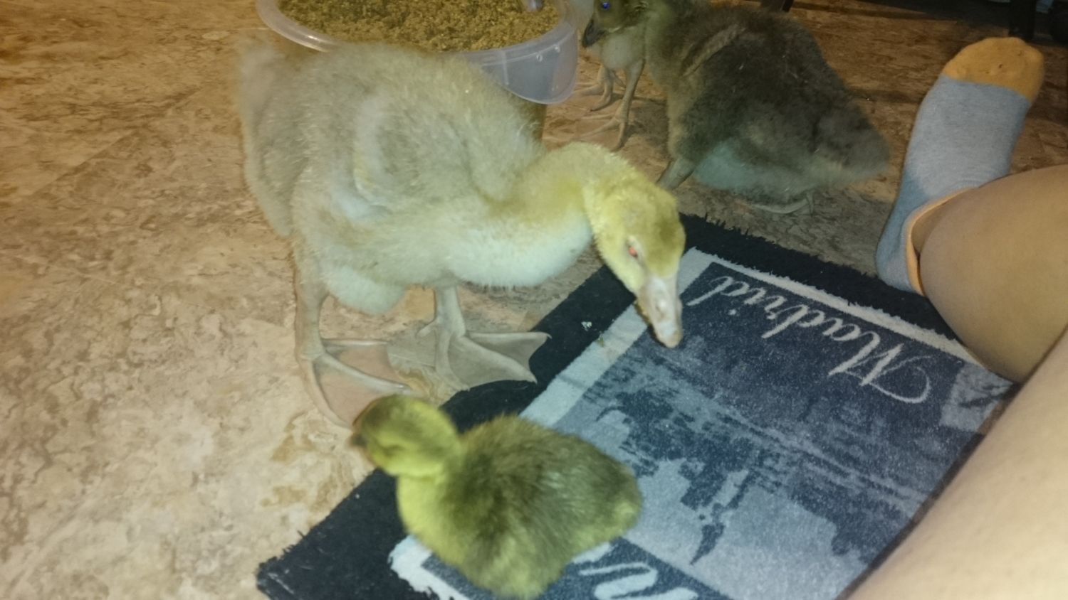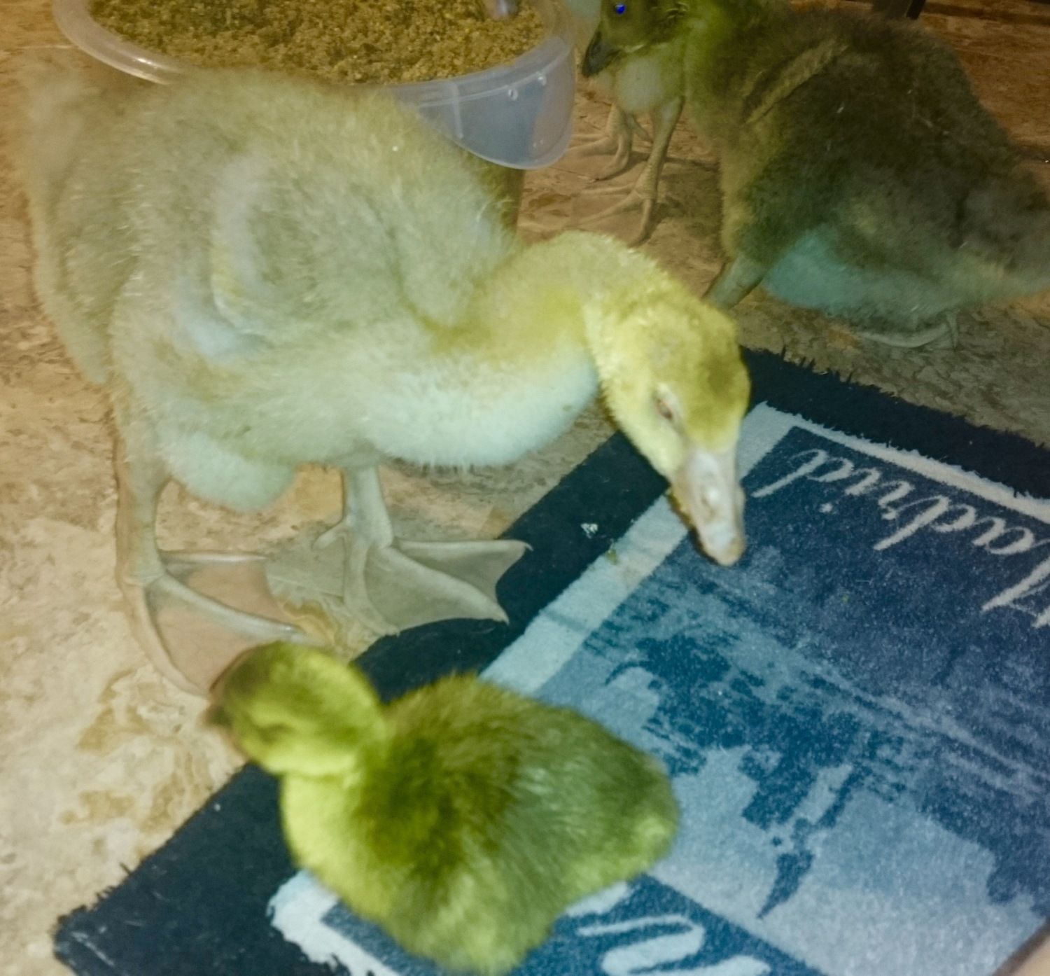 Now that really shows how fast they grow. they are beautiful goslings and good to hear your older ones aren't picking on the tiny baby..