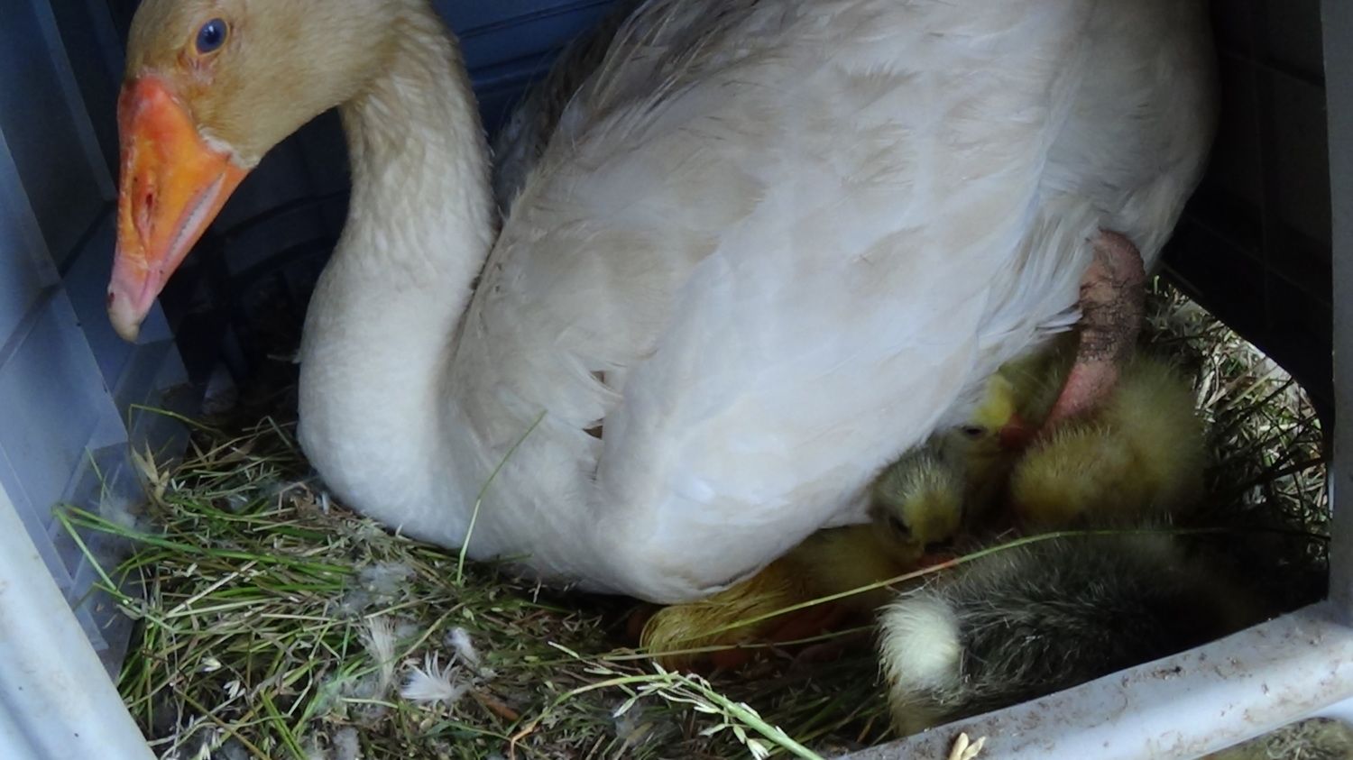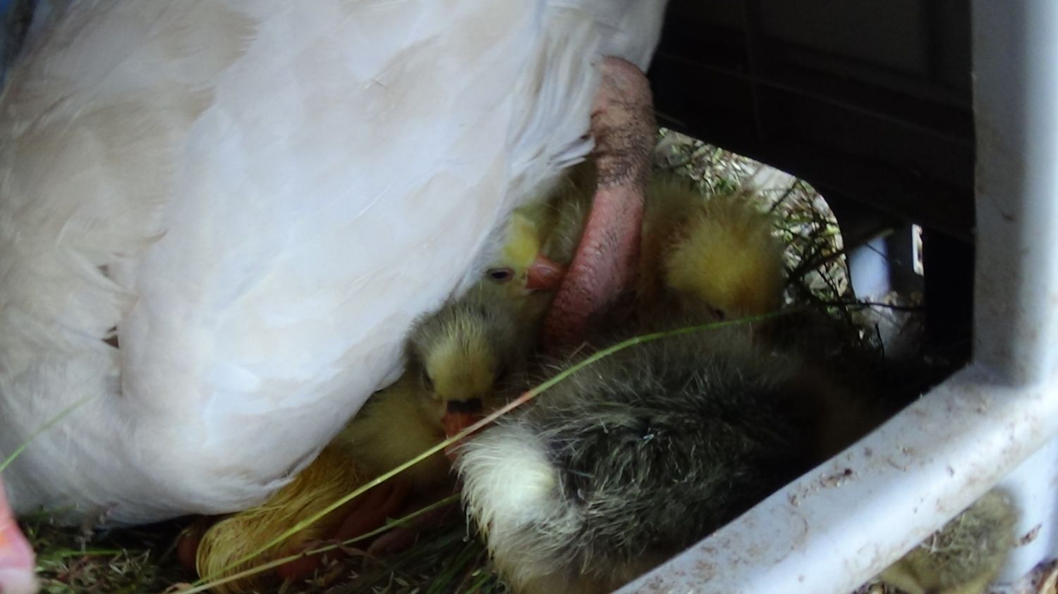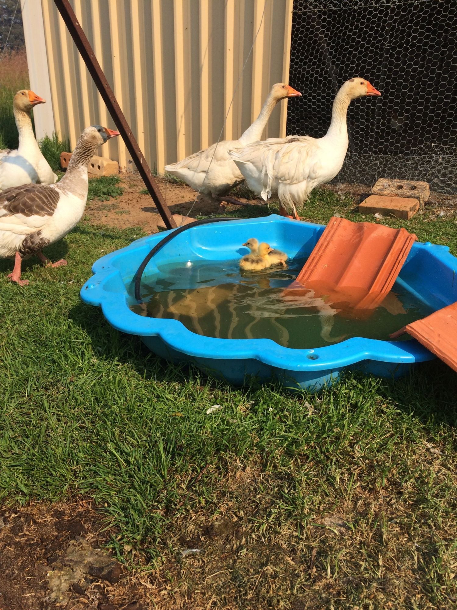 Goslings going well nice and strong now first time out of the pen today so cute and fluffy let ten in the kiddie pool and they enjoyed the large area of grass