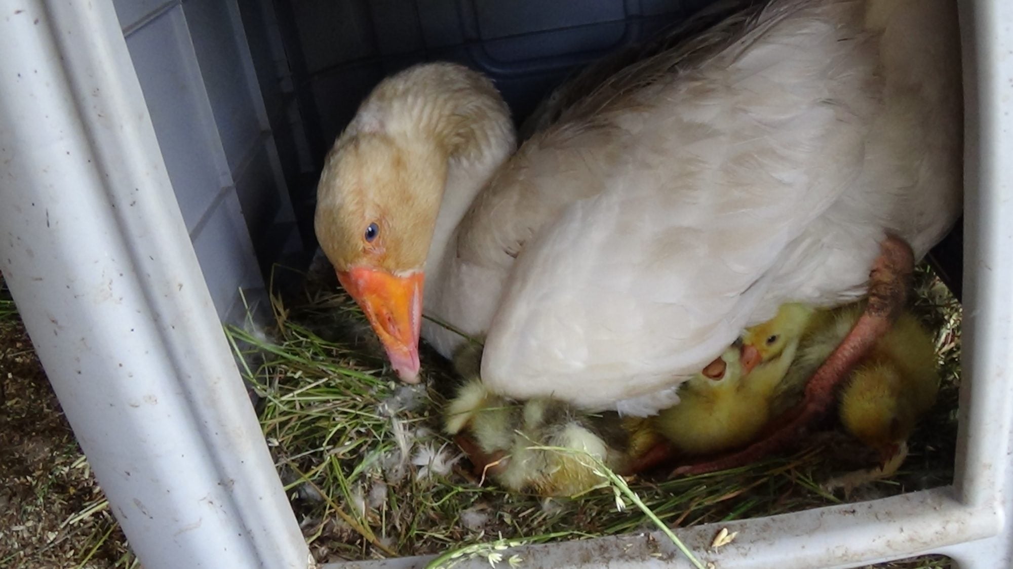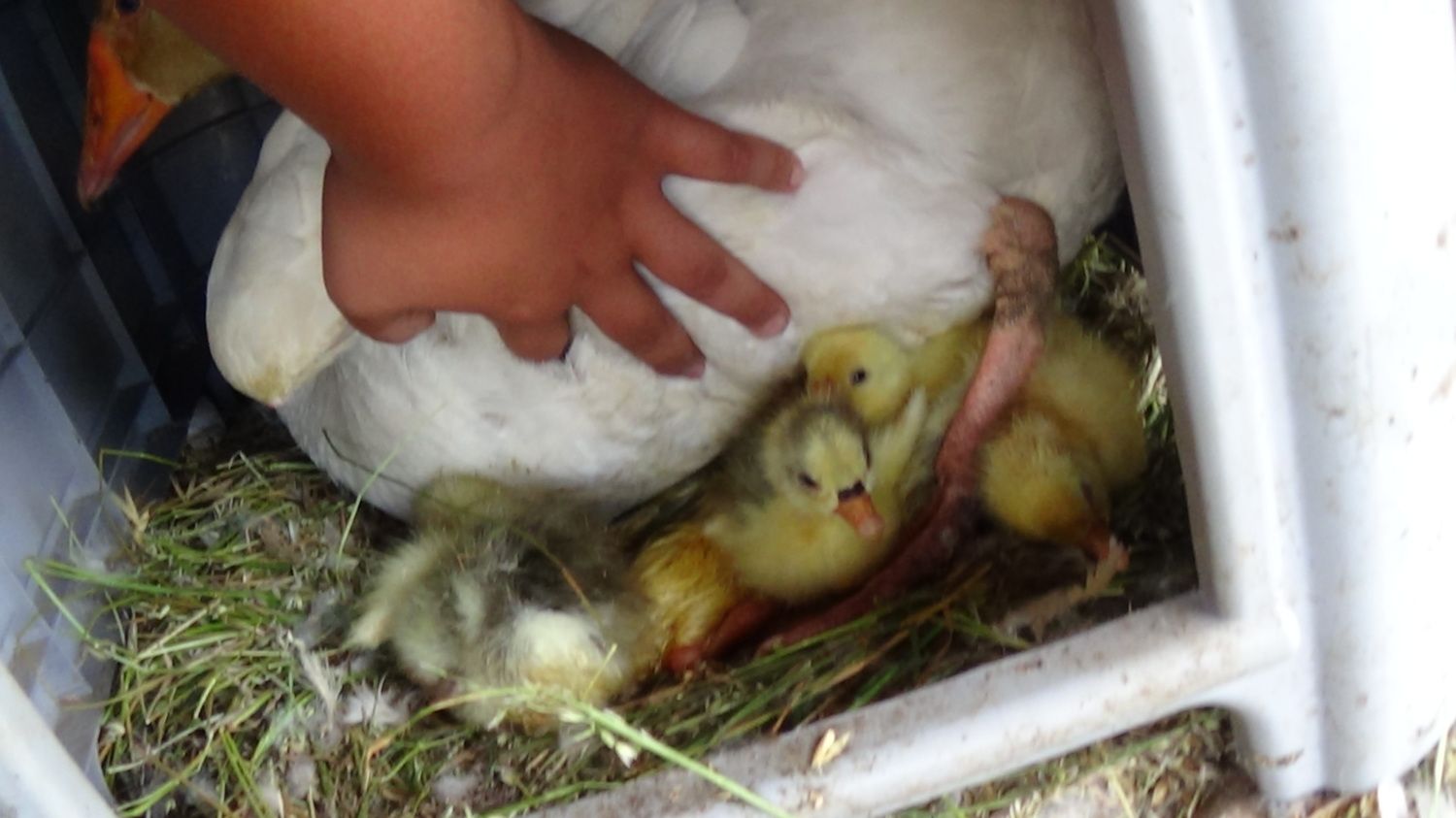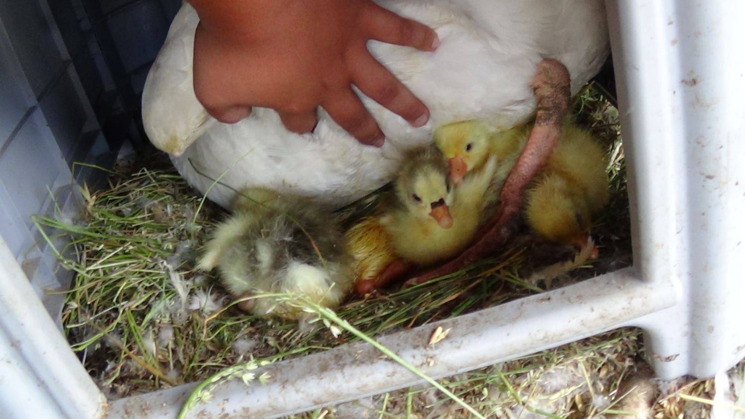 I'm so sorry about your gosling but Congrats on 4 that hatched. Cover that what ever that was the gosling got into an drowned. Look forward to pics.Well I have some bad news and some really good news so bad news first my second gosling drowned in out adult Toronto which are even difficult for the adults to reach so I have no idea how it go in anyway my second goose flapper all her eggs were rotten so she lost all eight eggs then the good news is my smallest girl bear has hatched out 4 and one is pipping ask I am typing anyway two greys and one full white and one that I think will be a Sebastopol with its colouring so yeah will have some pics tomorrow