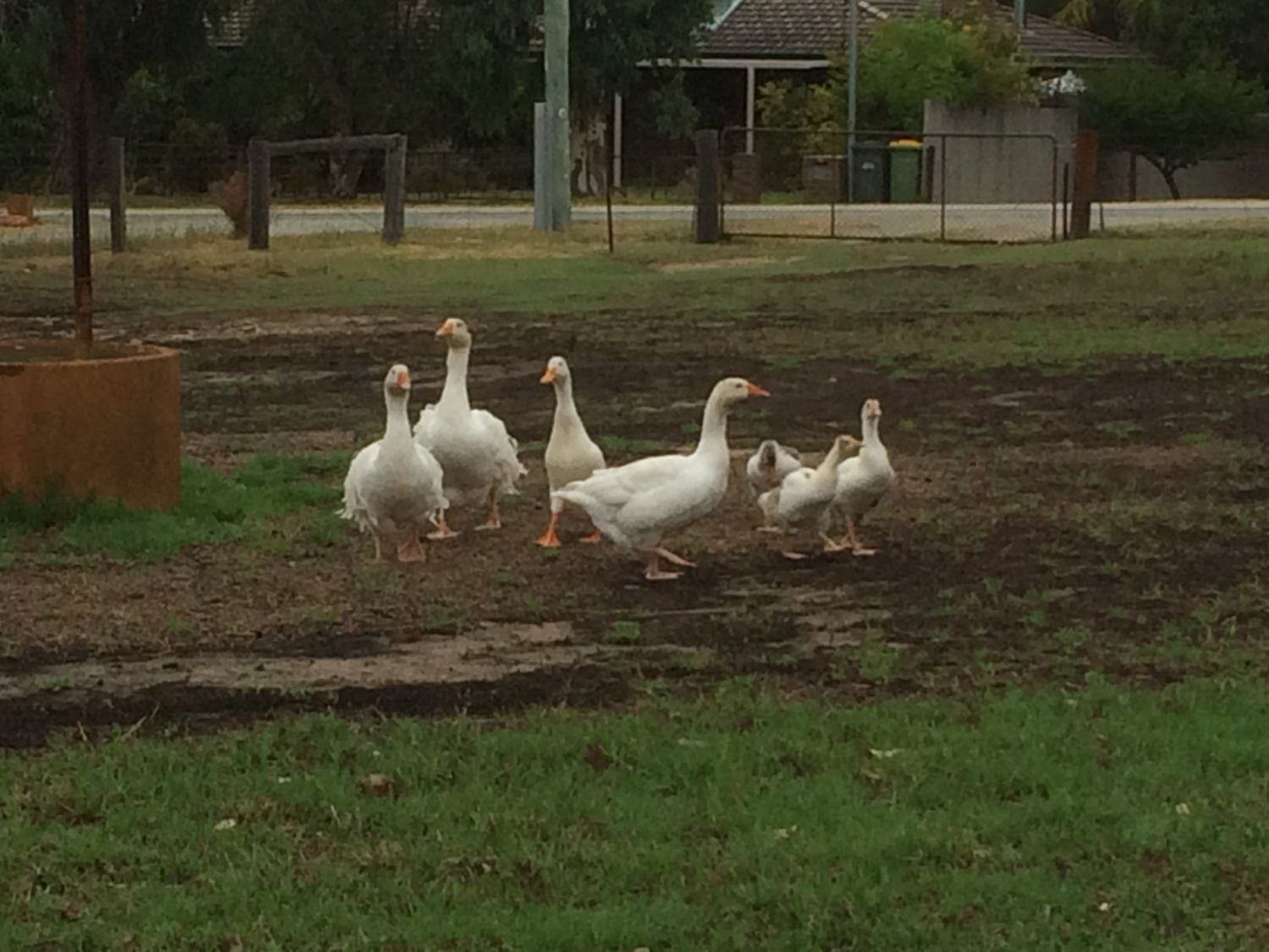 Their all beautiful, and the gozzies have really grown up. Funny about the duck liking to hang out with the geese.