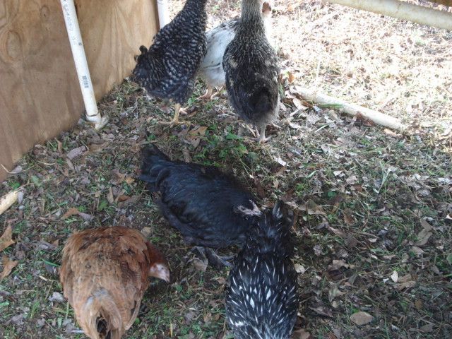 I gave my four hens I had away to my roommate's mother because we thought we were going to move to an apartment. Well, turns out we are staying in this town and moving to my old house with a nice fenced in backyard, and I still have my chicken tractor! Soooo, I got chicken fever and drug him with me to the lady's house I bought my hens from last time. I was determined to get only certain purebreds, but of course with his help we ended up with two mutts, lol. They are all around 2 months old and instead of 4 I got 6.....oooppss, lol. He said he build me another tractor, yay! I may have to get two more then........hmmm. I ended up getting a Black Copper Maran (she showed me the parent's eggs, very nice!), a silver laced Wyandotte, an Americauna, a Barred Rock, and two mixed, supposedly mixed Wyandotte with RIR, but one has grey legs and they are both lighter colors, white with black speckles. Will have to get pics to have you guys help me out with what they are and what sex, can't have roosters in town! But I'm very happy with my new bunch and excited!!!