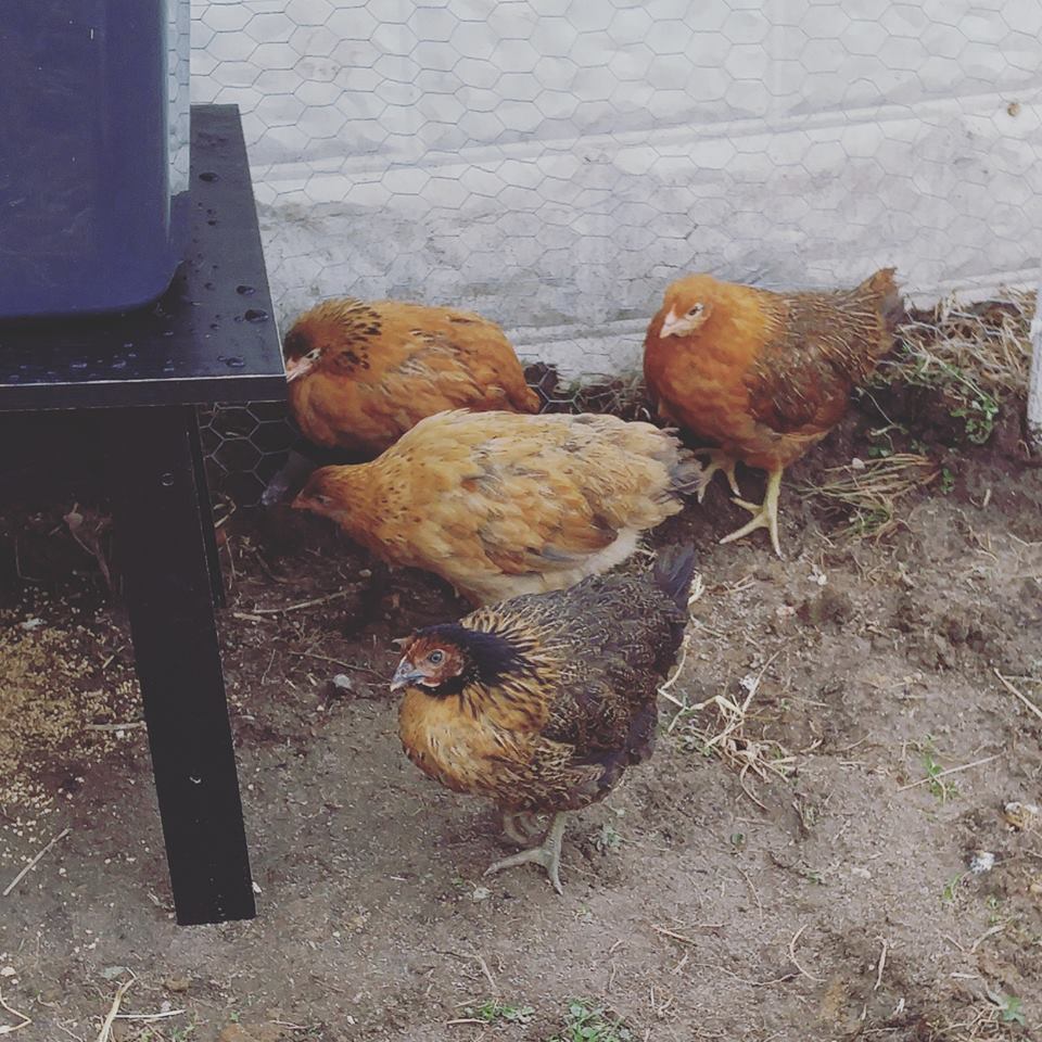 So I started with 3 RIR pullets I got from a well known chicken farmer nearby. I wanted more, but at the time he only had RIR's and I definitely wanted some diversity in my flock. All other chicken farmers who had pullets were an hour and a half away. So I was going to resort to TS for some chicks and just brood them until they were big enough to go in the outside coop with the other girls. I was lucky enough to find some barnyard mixes that were about 6 weeks old up the street from me. I ended up with 4 of them, of which I had to 'sex' them myself, in the dark. lol So I'm pretty confident at least 3 of them are girls, but one may be a roo.