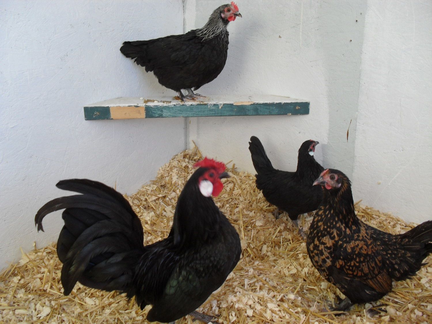 1 hen is a pure Black Rosecomb, other 2 F1 X, cochin,seabright and cochin/rosecomb.