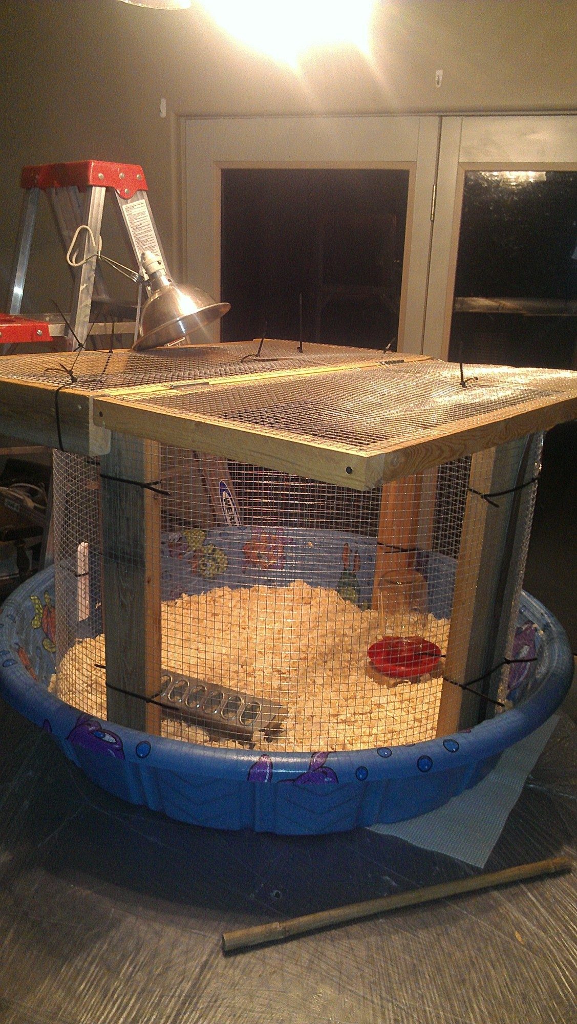 Well, we've got our brooder and our ever-expandable grow-up plan. I know the light isn't secure yet. Still trying to find the optimal light location for temperature.