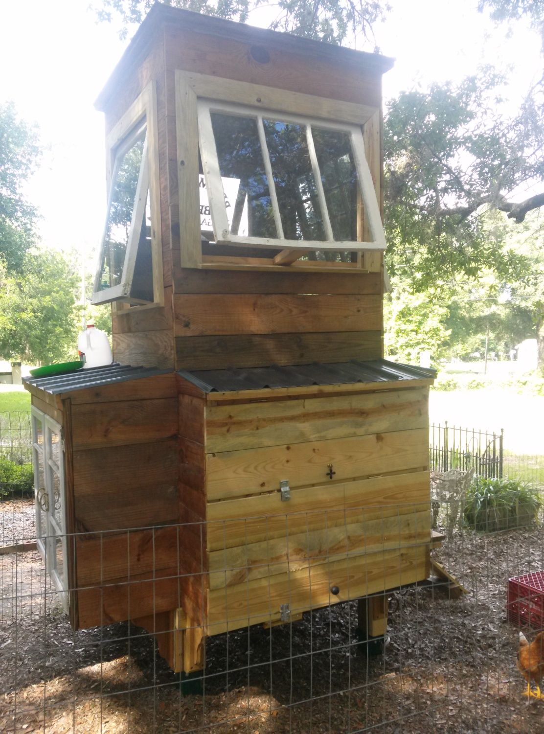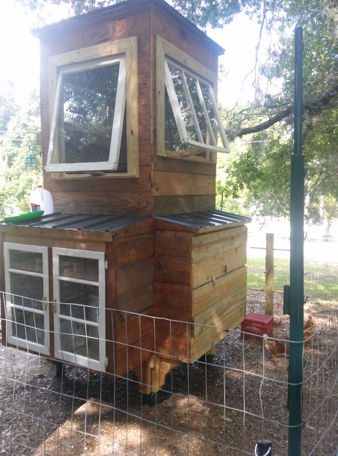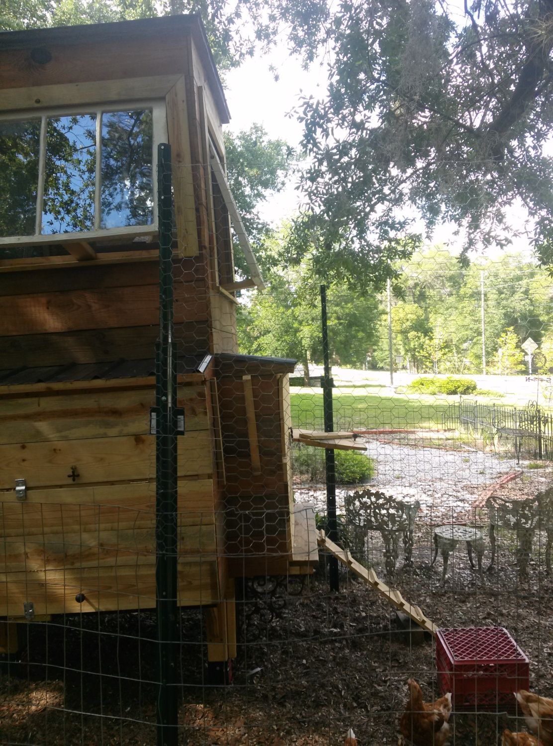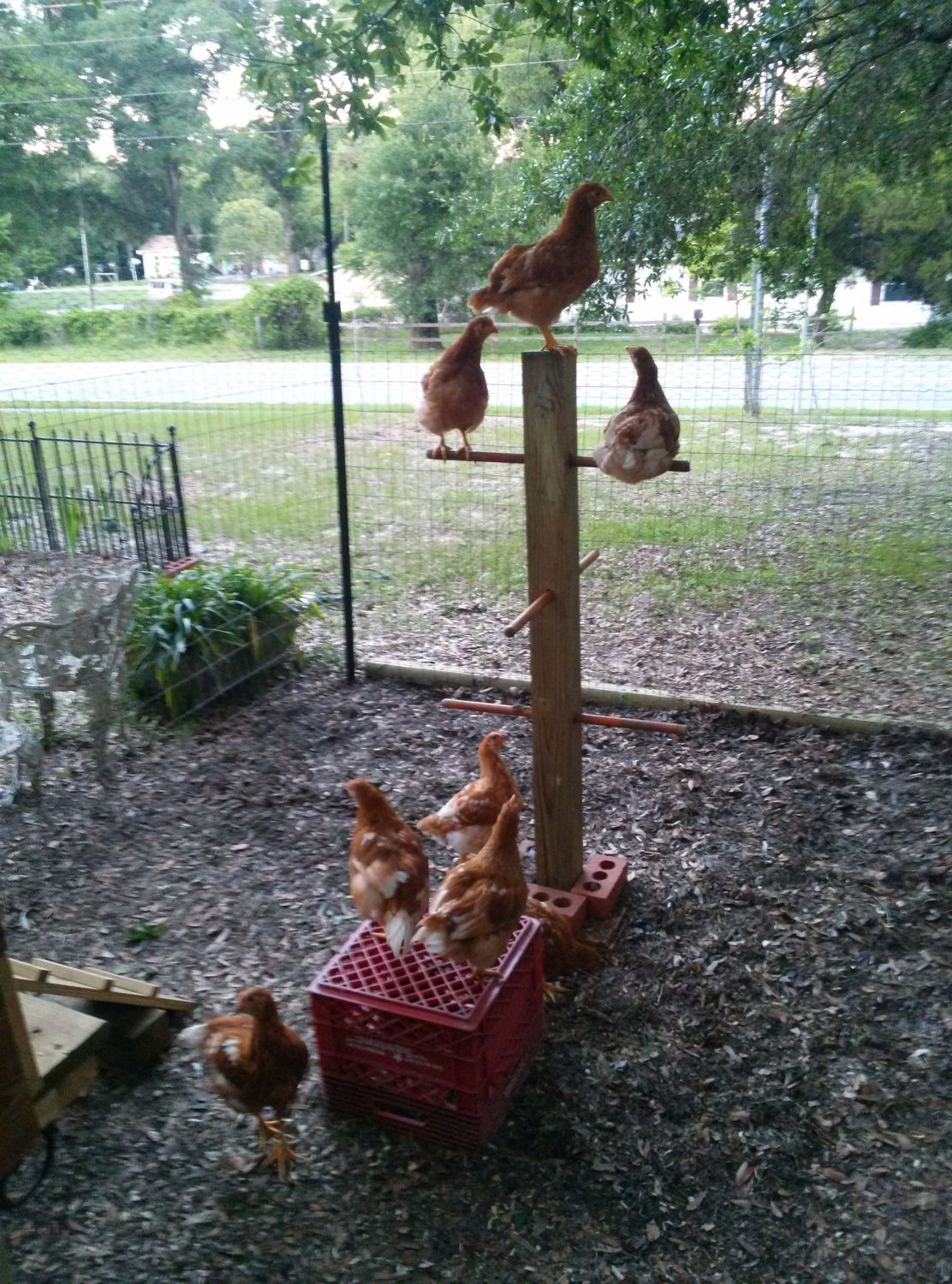 The girls out in the yard in their dog crate, on their jungle gym, on in the open nesting area, chowing out on corn on the cob.....fresh!