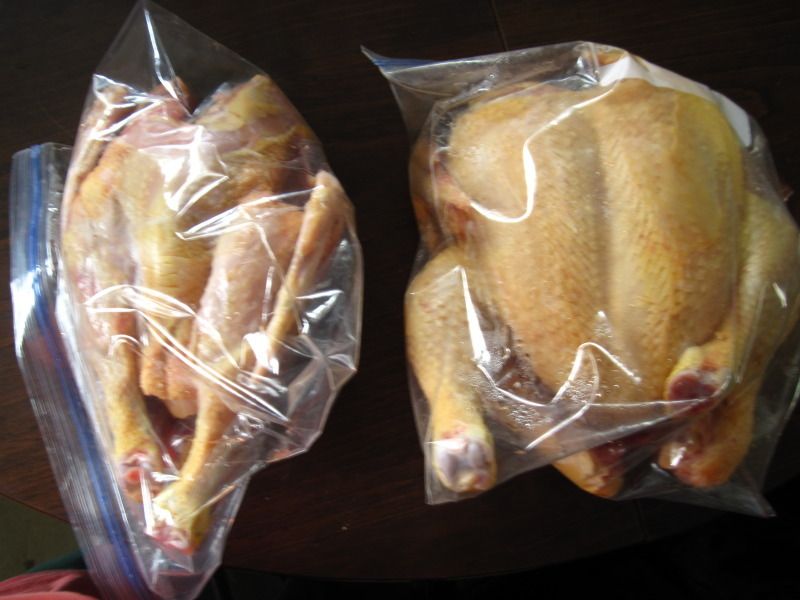 great thread. i'm glad to see a pullet next to your meaties. i was wondering about the size difference - big difference. you make it sound so easy. i look forward to hearing how you manage through the processing.