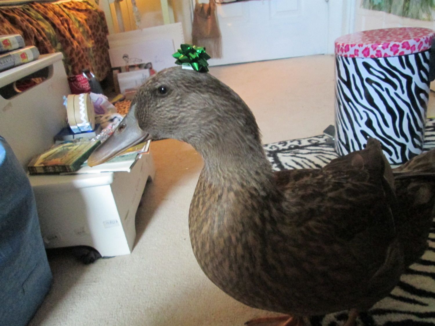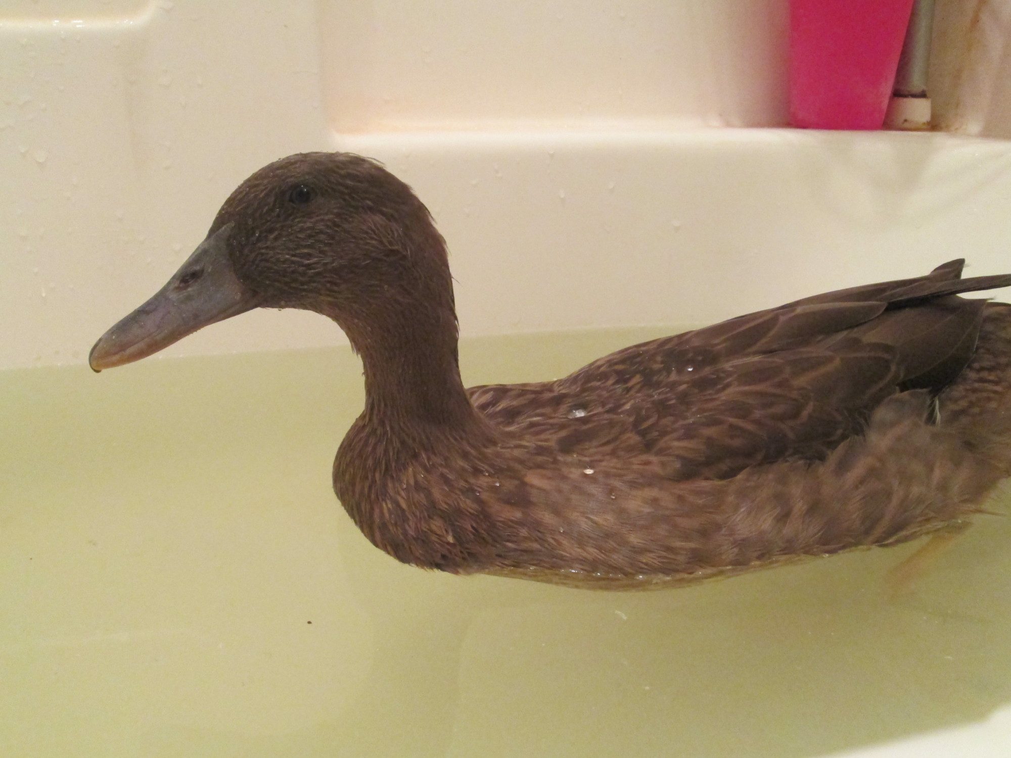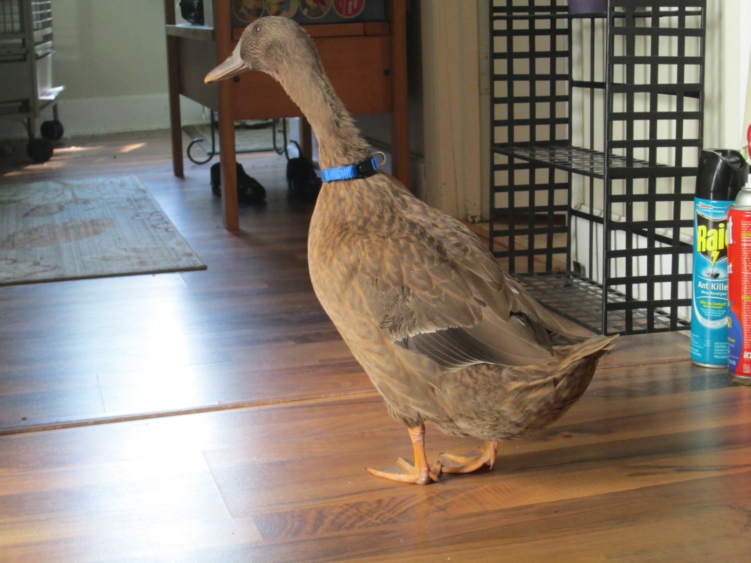 What happened was I bought her and her sister through farm and fleet, from farm and fleet. THAT was a BIIIIIIIIIIIIIIIIG mistake. But I transgress. Her sister ended up dying so instead of her being raised as a "pet" duck, she was raised as a "member" of the family. She actually loves to be pet. her favorite thing is "butt scratches". Don't worry I don't mean her ACTUAL butt butt. Just her tail and the sides. Sometimes under the wings. The funniest part is she would never let you stop if you didn't stand up and walk away. First she bobs her head then she make s her body go flay while she's standing up and that means that she wants a butt scratch.