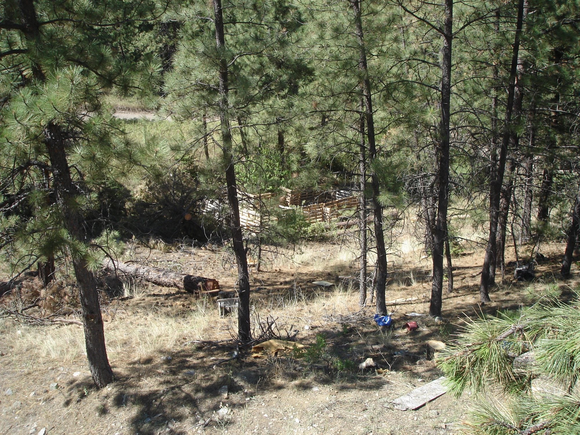 View of the pen from the house. The dogs laze around right were I am standing to take the photo or they lay in the shade down by the pen.