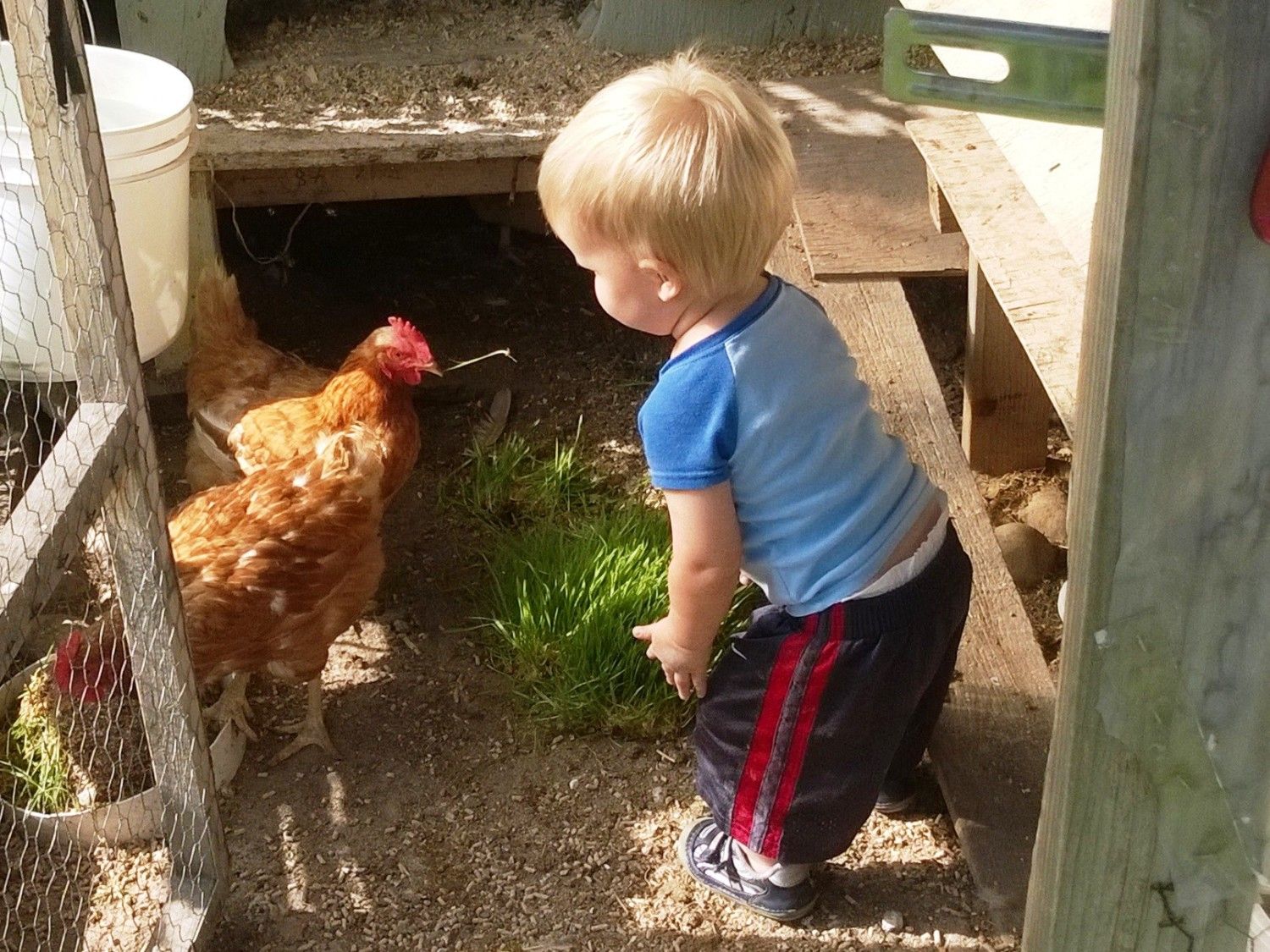 Very cool, my daughters 2 & 4 love playing with the chickens, they will spend hours in the coop if I let them... Just tonight my 2 year picked up, bear hugged and started carrying around one of the bigger roosters and proclaimed "I got a big one"... She was obviously much more excited then the rooster...