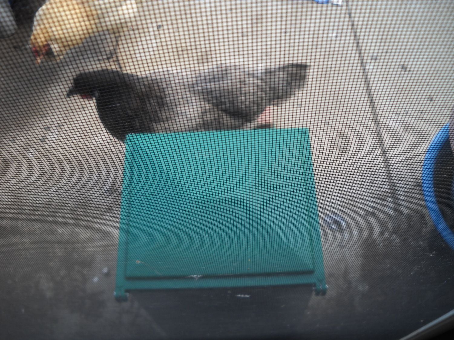 I MOVED THE FEED-O-MATIC AGAINST THE BACK SCREEN DOOR WHERE THE CHICKENS CONGREGATE EVENINGS AND ONLY THE BLUE BREDA STUCK HER HEAD WAY INTO THE FEEDER. THE OTHER BIRDS JUST WATCHED. SHE ATE FROM THE FEEDER SEVERAL TIMES AND IT PEAKED INTEREST FROM THE OTHER 3 CHICKENS. THE DRAWBACK IS ONLY ONE CHICKEN FITS ON THE TREADLE SO THE OTHER CHICKENS DON'T FIT AND ARE NOT EVEN TRYING IT AFTER SHE GETS OFF. WE'LL SEE HOW MORNING GOES. I'LL ONLY HAVE THIS ONE FEEDER OUT TO SEE IF THE OTHER CHICKENS WILL TRY IT AFTER THE BLUE BREDA GETS OFF IT.