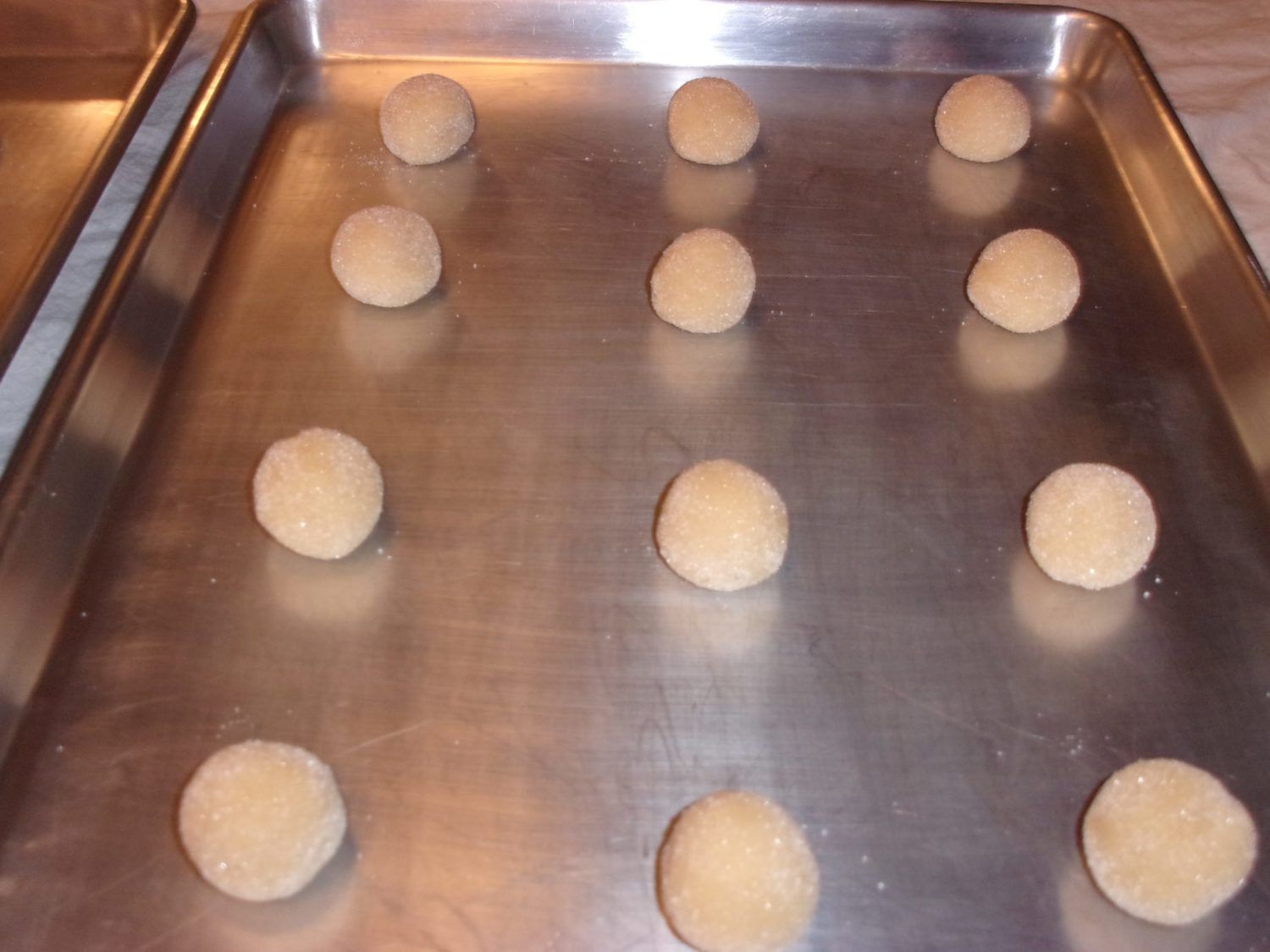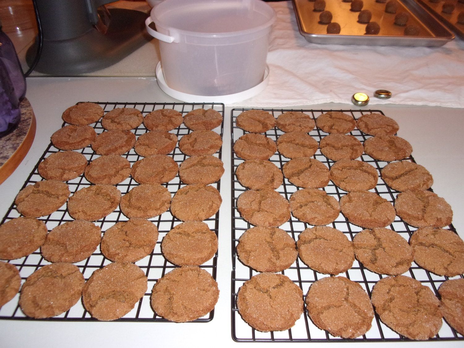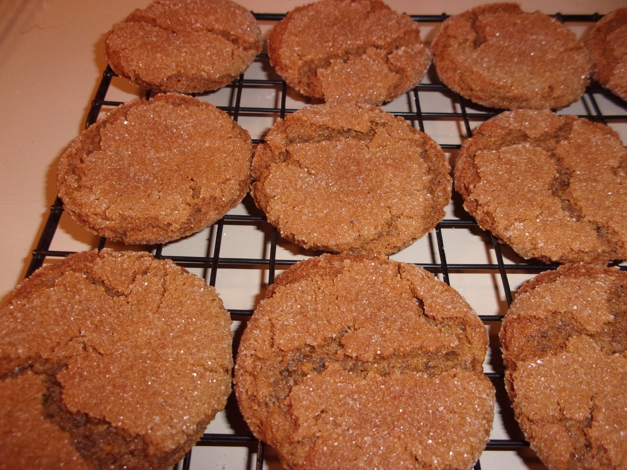 Grandma Lock's Molasses/Ginger Cookies 3/4 cup CRISCO (have tried butter, lard, a combo nothing quite right) 1 cup sugar cream above ingredients add 1/4 cup Brair Rabbit LIGHT molasses 1 lg egg -beaten I also add the items below at this time (woks for me and I don't miss something) 1 teas of cinnamon 1/2 teas ground ginger 1/2 teas ground cloves 2 teas of baking soda (do not miss this or you get hockey pucks fit only as dog treats) BLEAD/mix add 2 cups AP flour chill until you can handle the dough. roll into smallish balls and then into sugar place on Ungreased cookie sheet YEILD about 4 dozen bake at 350* for about 10 minutes, Doesn't work well at high altitudes you can double or triple a kitchen-aid 6 quart mix does a triple batch nicely Here is the scoop I use
