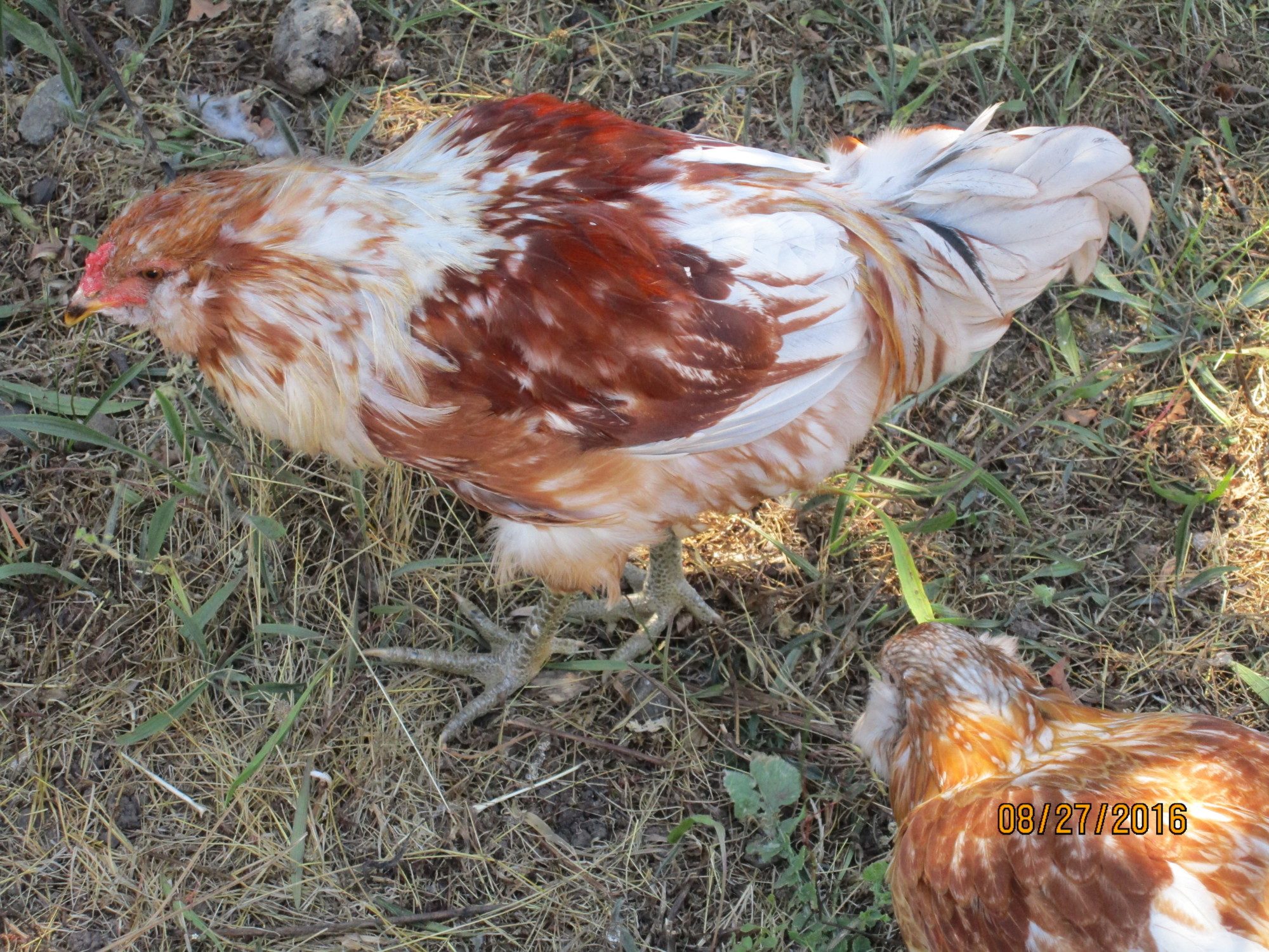 Remember CBs ugly chick ? missing fuzz and feathers ? Well, its an EE But it has the prettiest saddle feathers AND the fluffiest hen butt I have seen. LOL