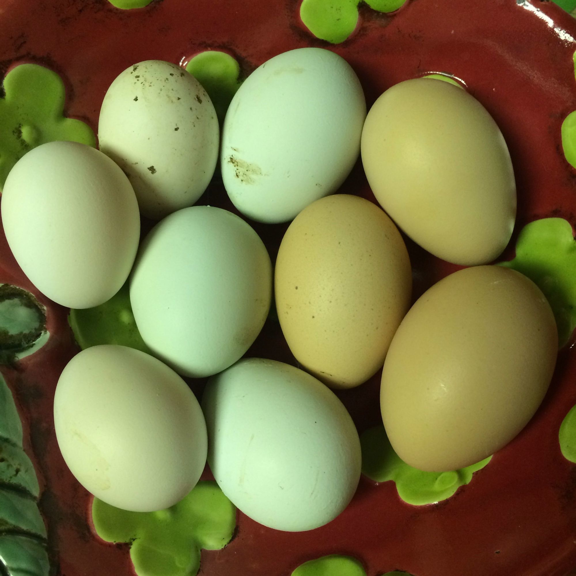 My poor little egg collection. I was getting a green or blue egg every day, then only blue and sometimes a little hona egg. Now I'm getting those big brown eggs, and no others.