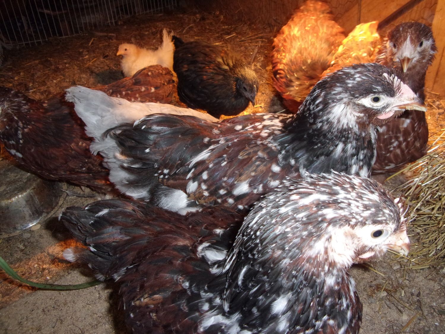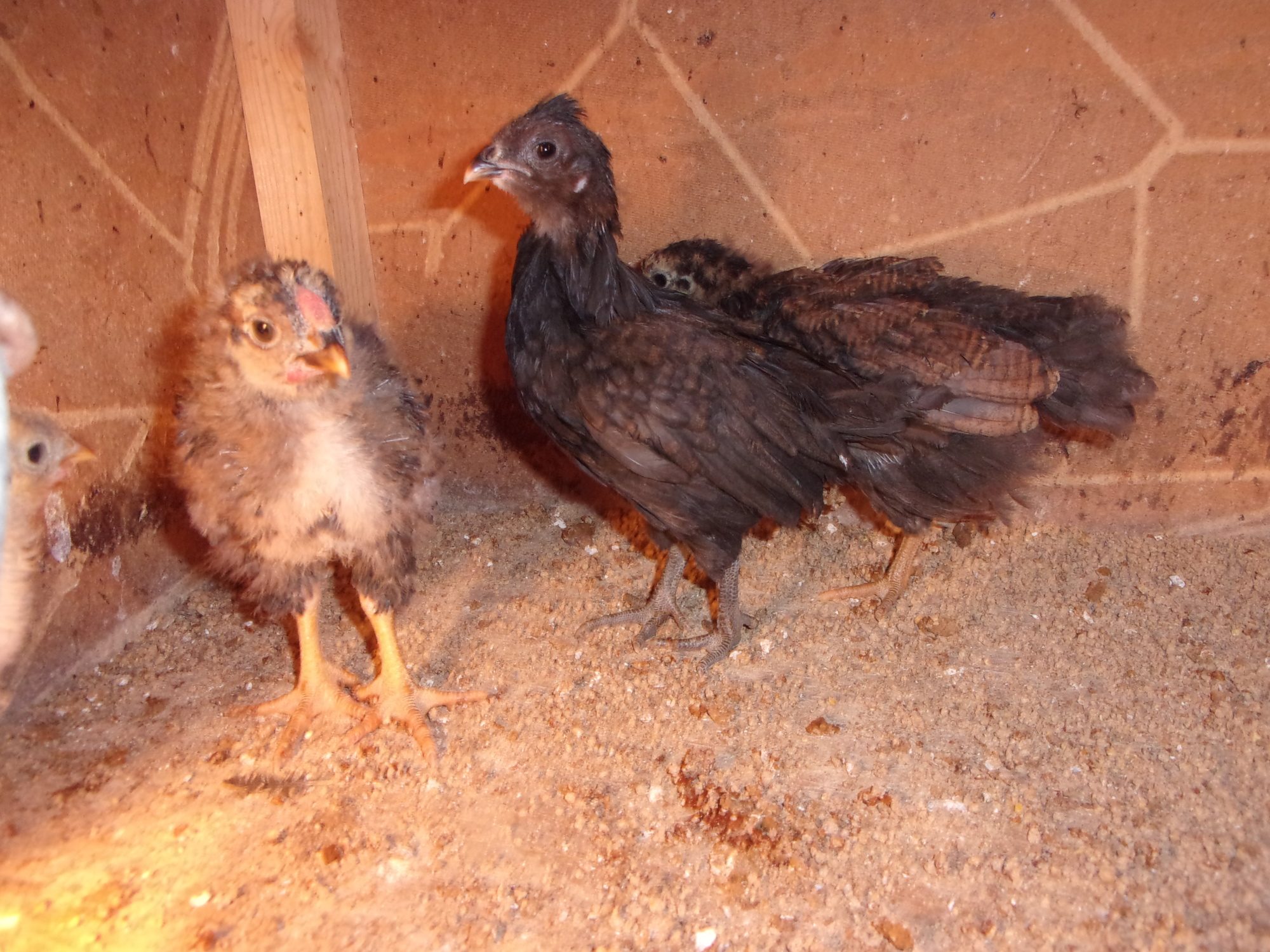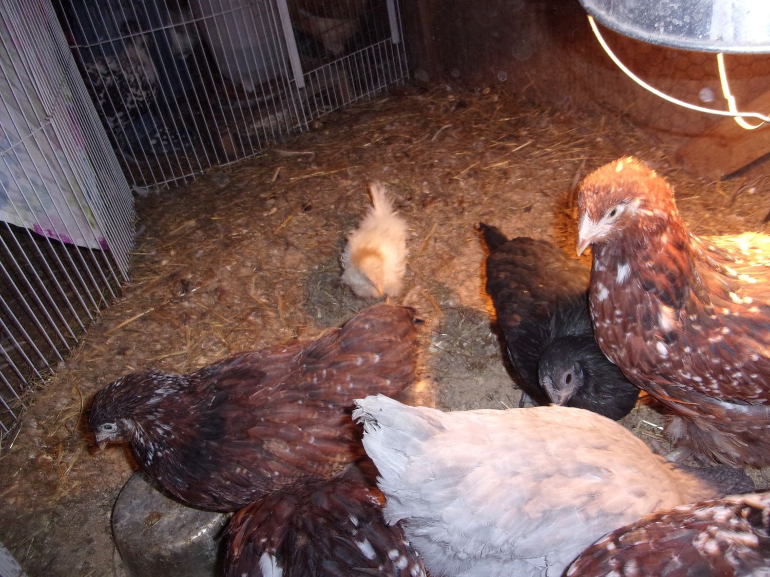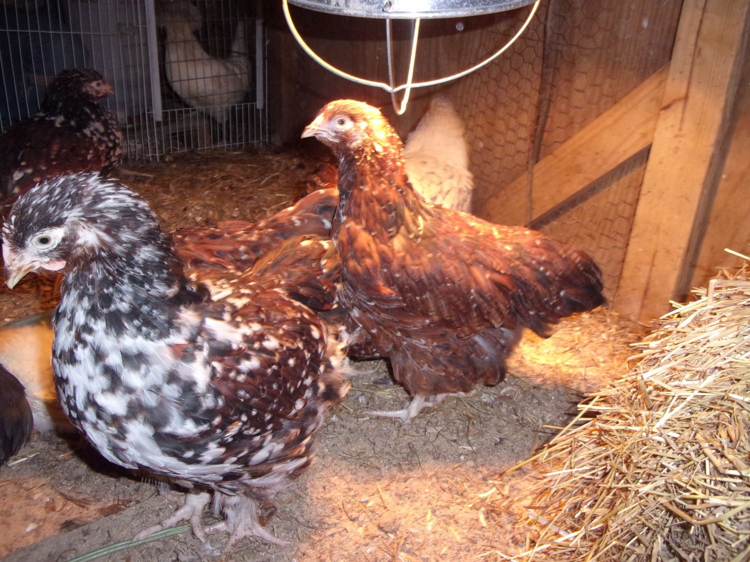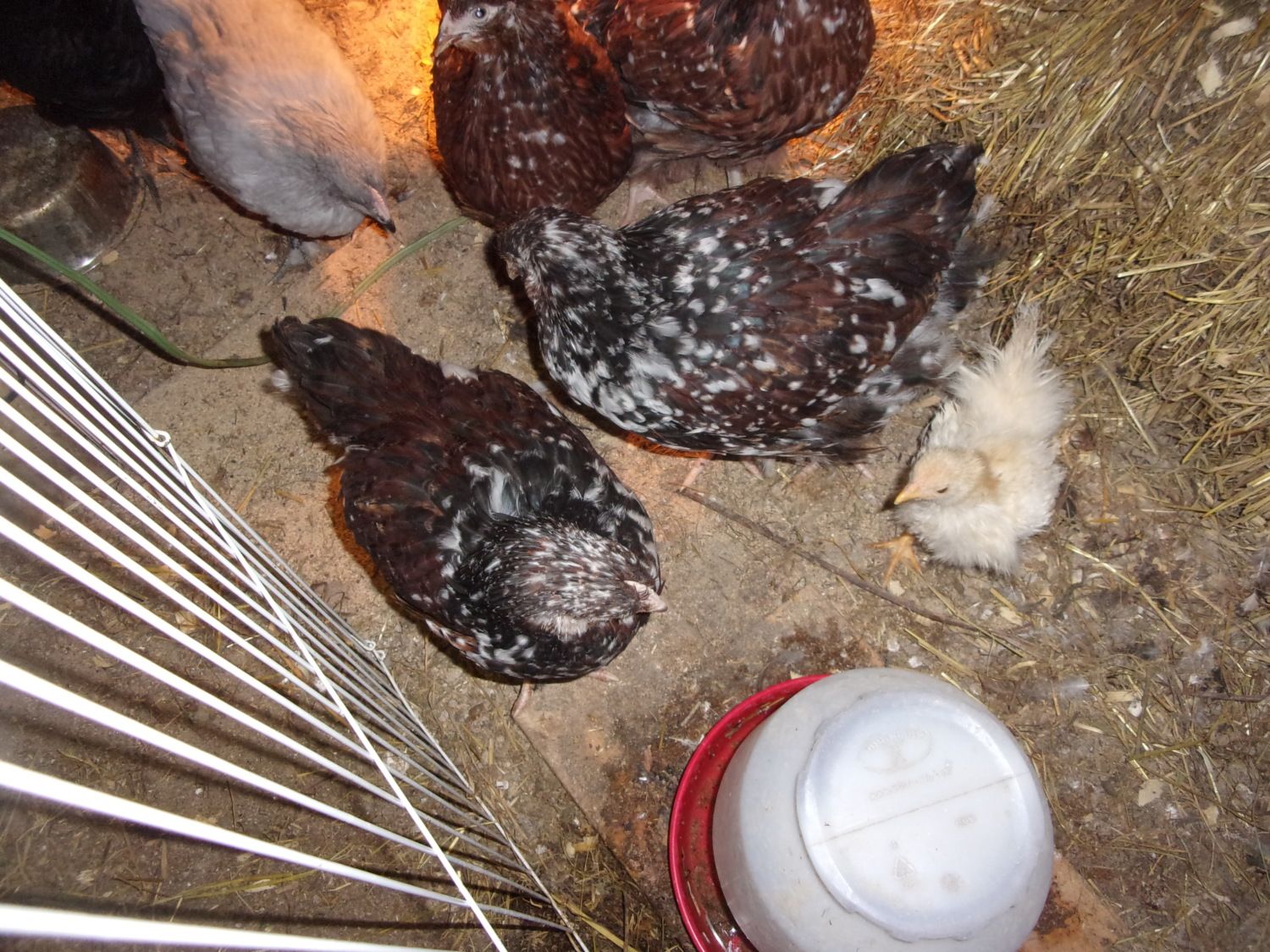 The Sussex are huge. Aren't they all the same age in the small pen? One Wyandotte a male for sure. Hope they get some lacing. And that tiny little white pullet is from your eggs? serama? Older crew look thirsty!