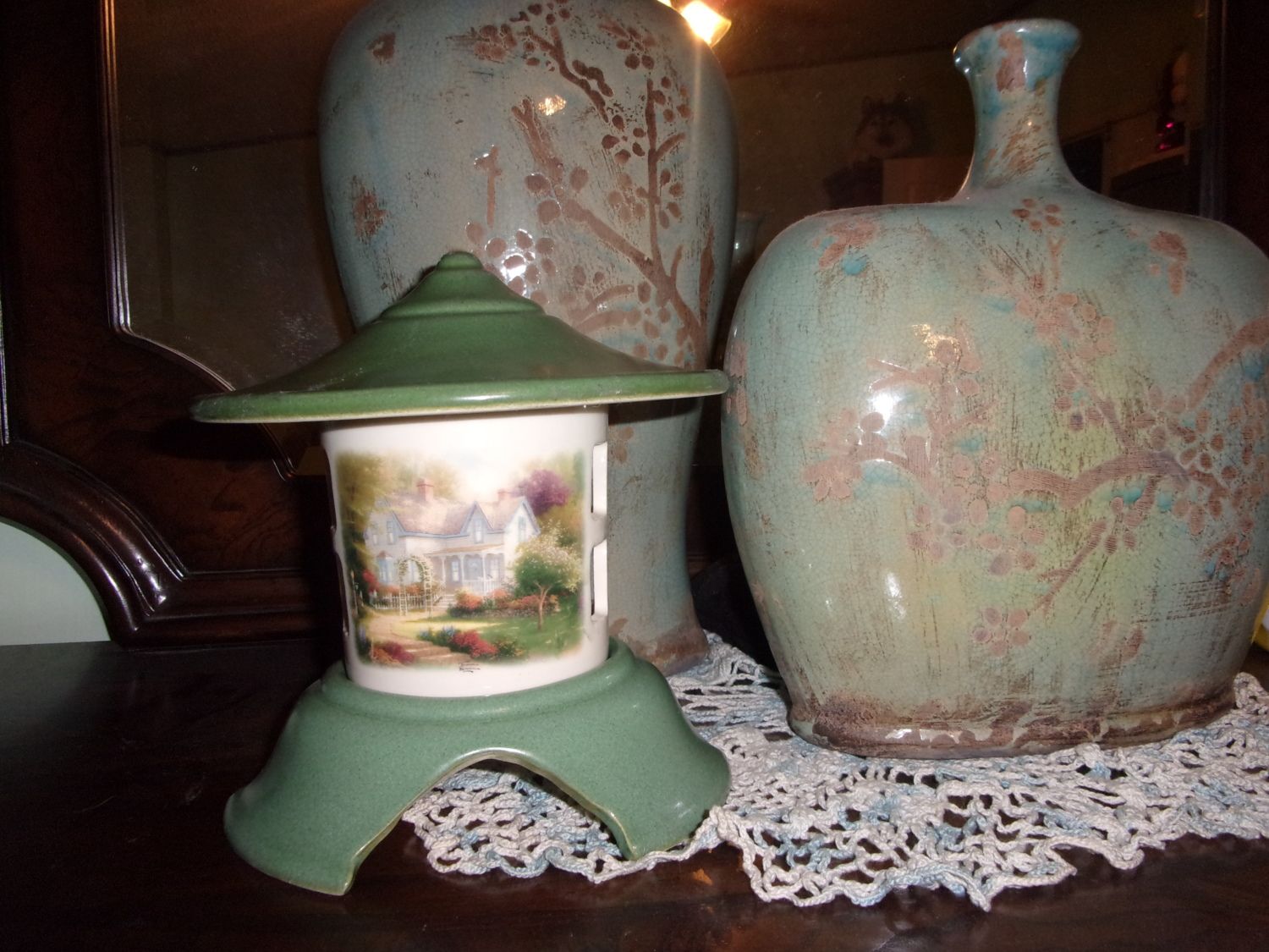 Oh, that's a pretty thingy! I like your vases too! Thank CB for getting the chick pics! (and then tell him to GO TO BED!
