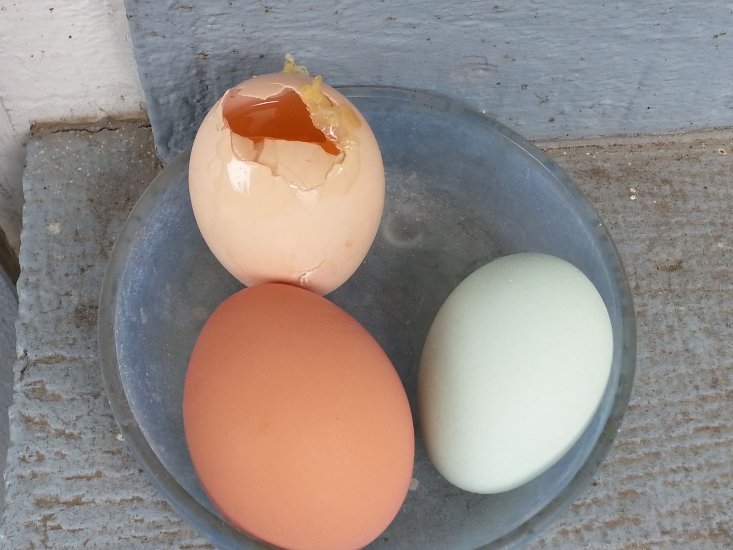 There must be more than one egg eater. Scooter was locked out of the chicken yard today. The crows have chased off all the jays, so I don't think it was a jay, even though I know they've been the guilty party before. I think it must be one of the hens.