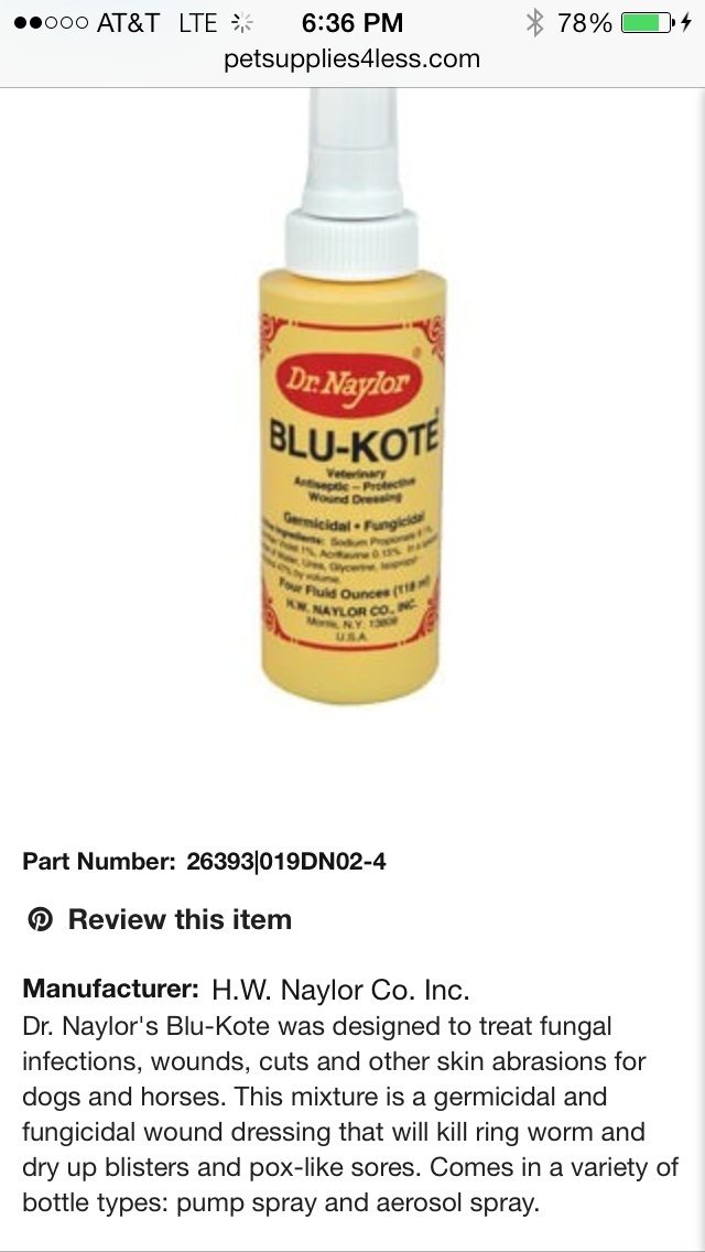 It's good for superficial wounds because it stains blue and masks the blood or irritation. You could use antibiotic ointment, too. The blu-kote dries almost instantly.