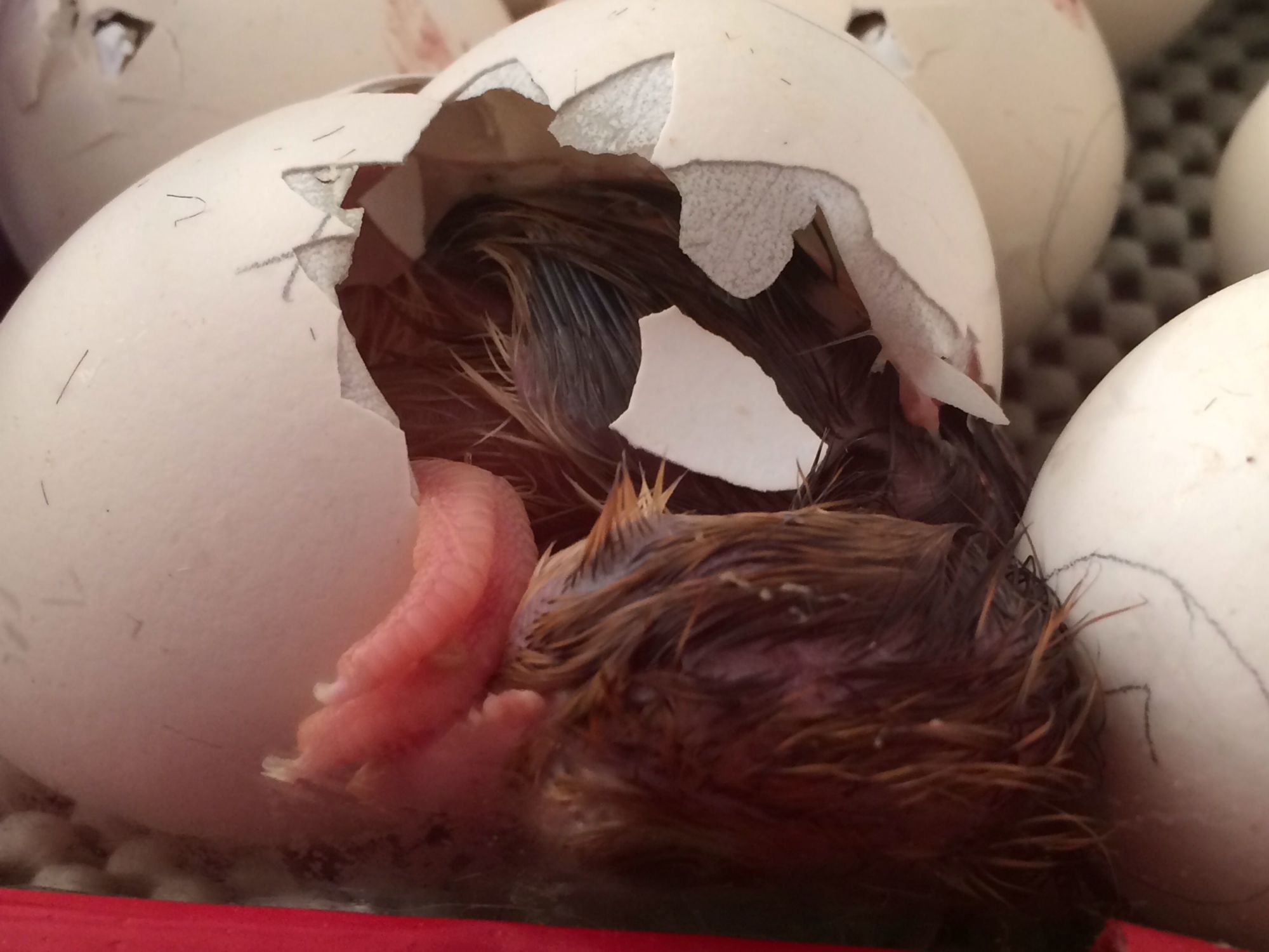 I can see the one with the big comb, and the bottom one still hatching has a big comb too! Maybe they just look big since their hair is slicked back??