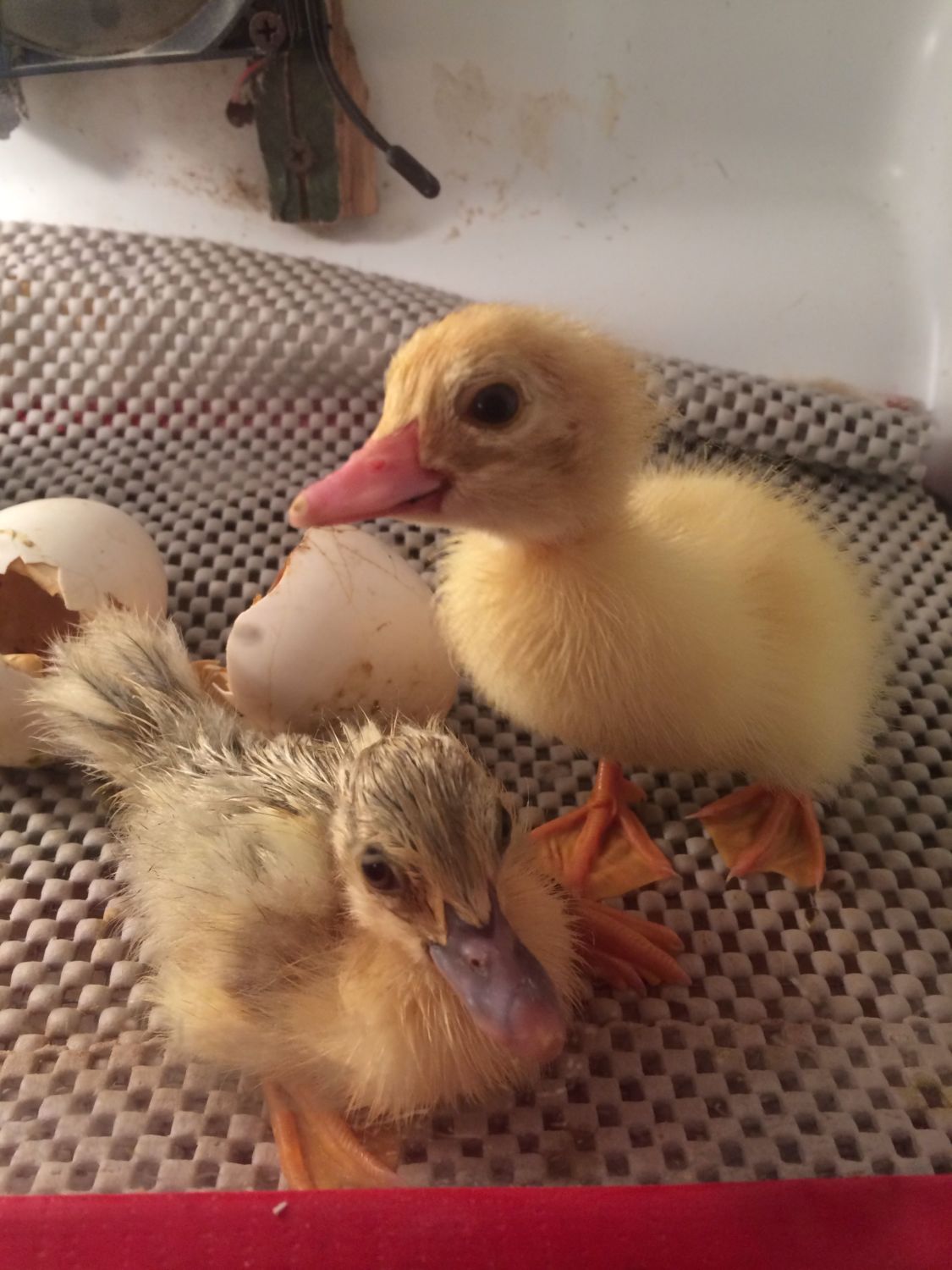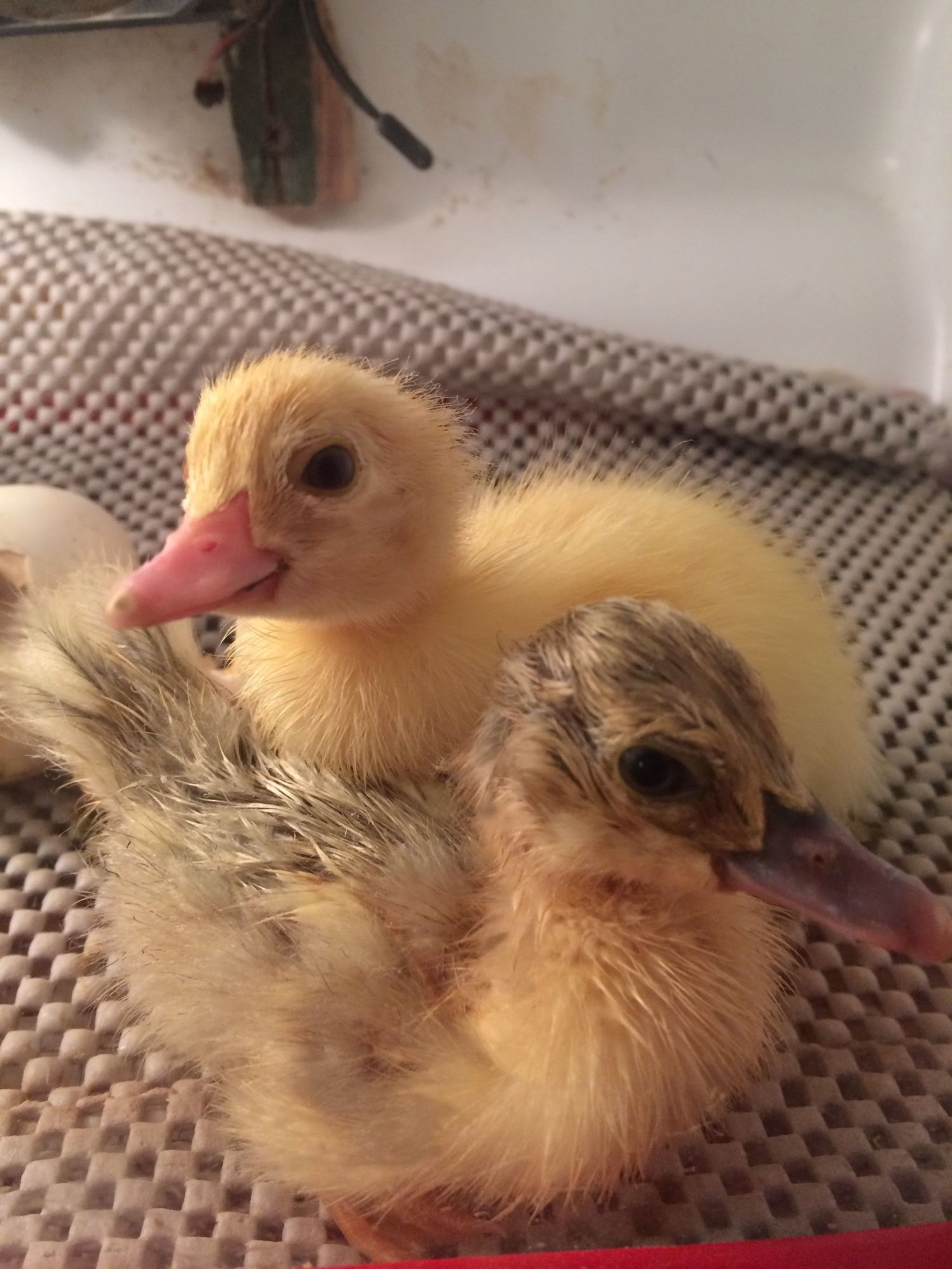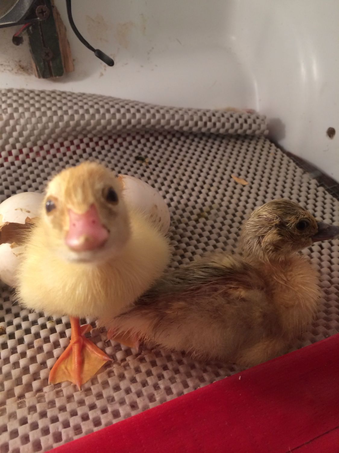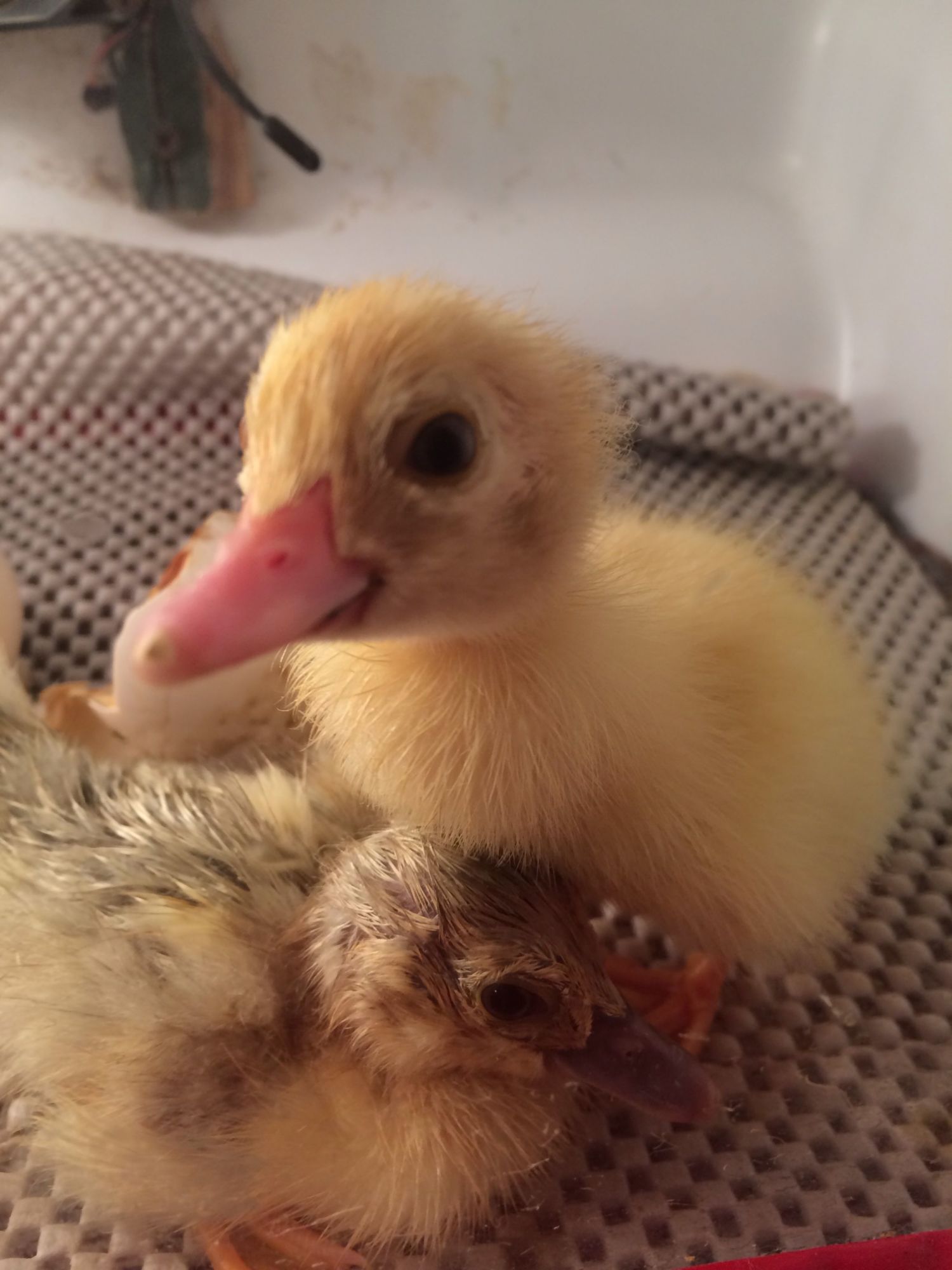 dont ducks bond with who they see first ?He was cheeping and tapping the glass.Righty is very calm.![]()