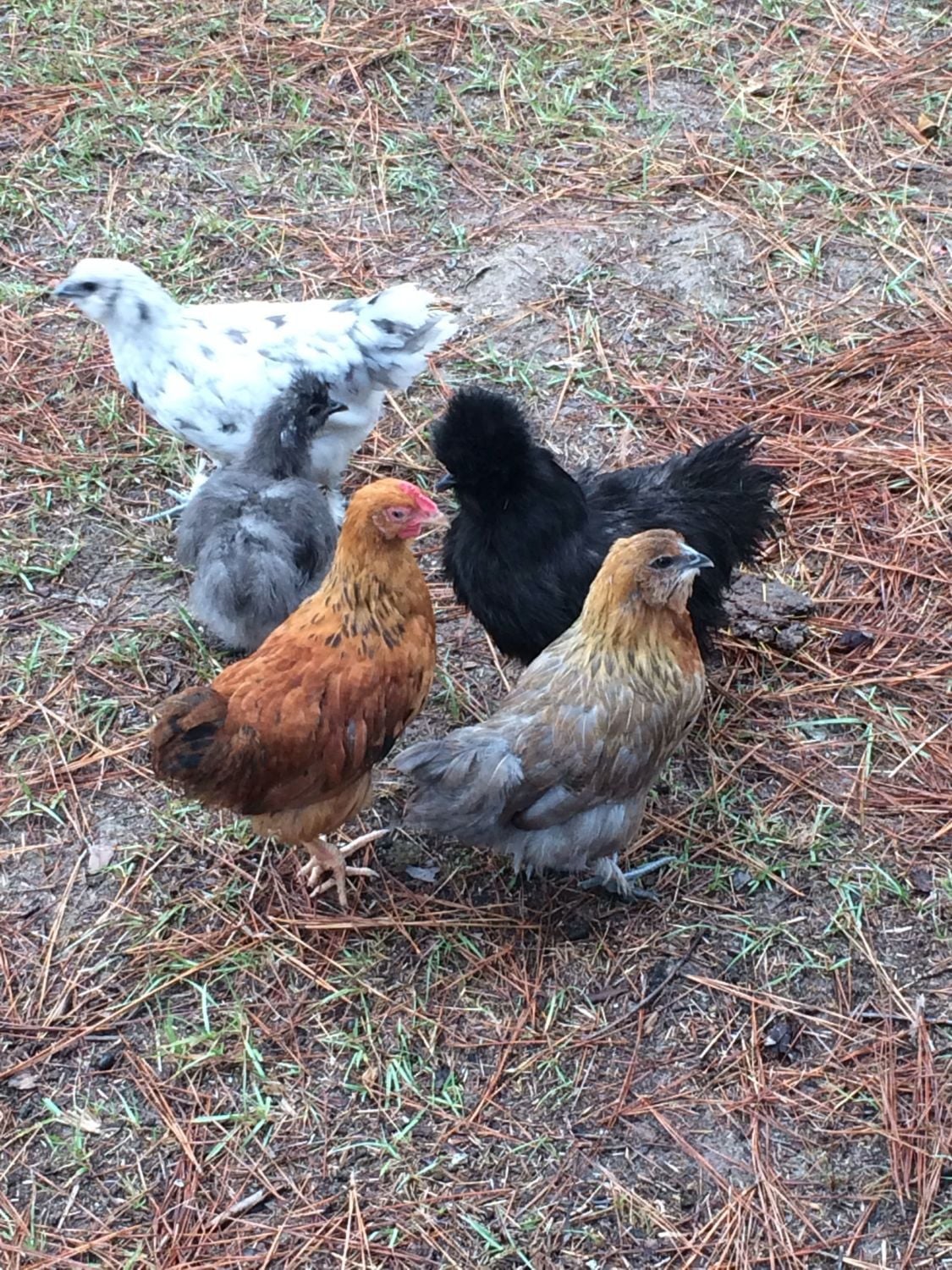The black silkie pullet and the 4 free babies! Just over 2-months old. Silkie is 5-6 mos.