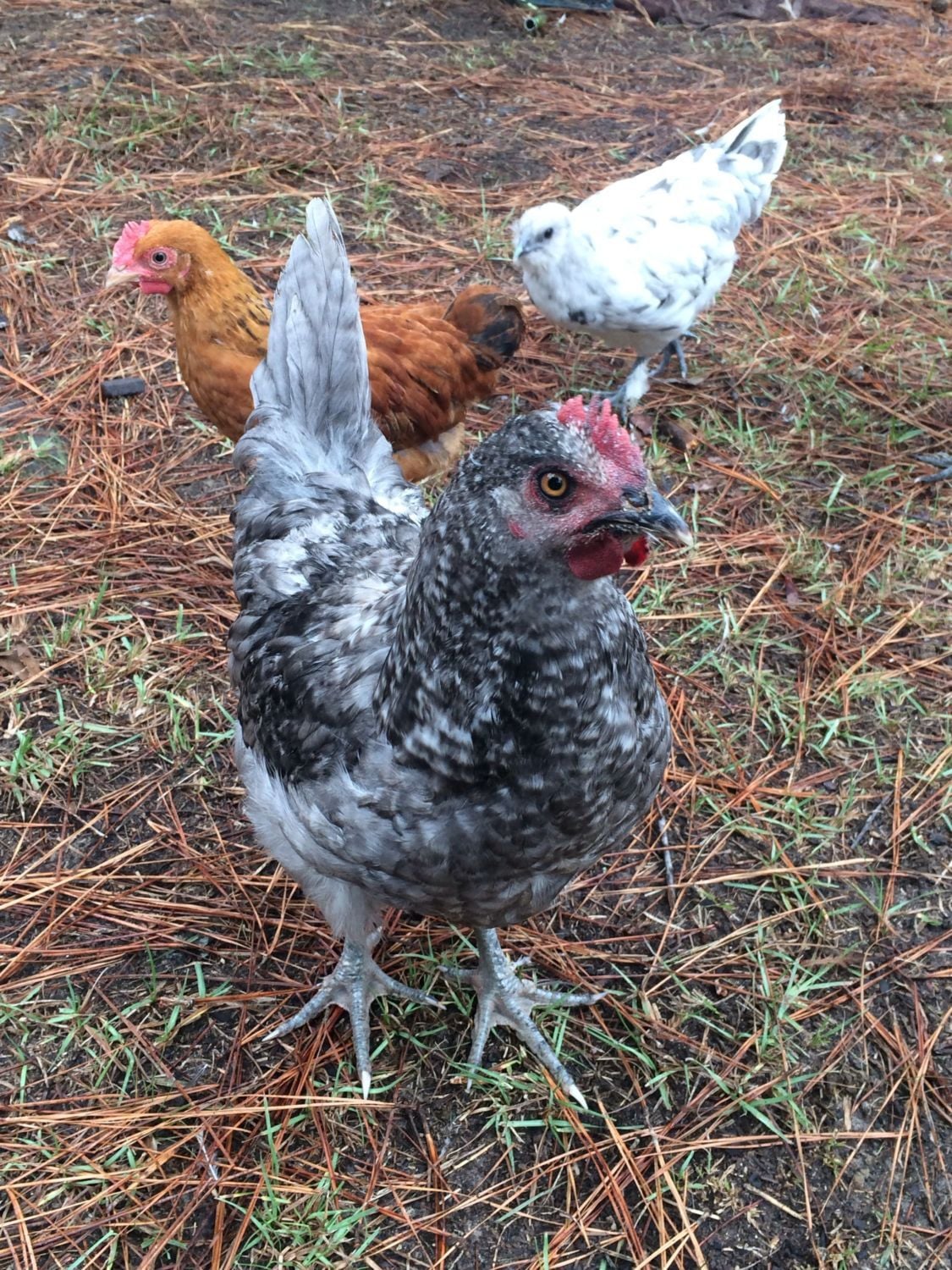 The red one in the background is another cockerel? Such a red face.