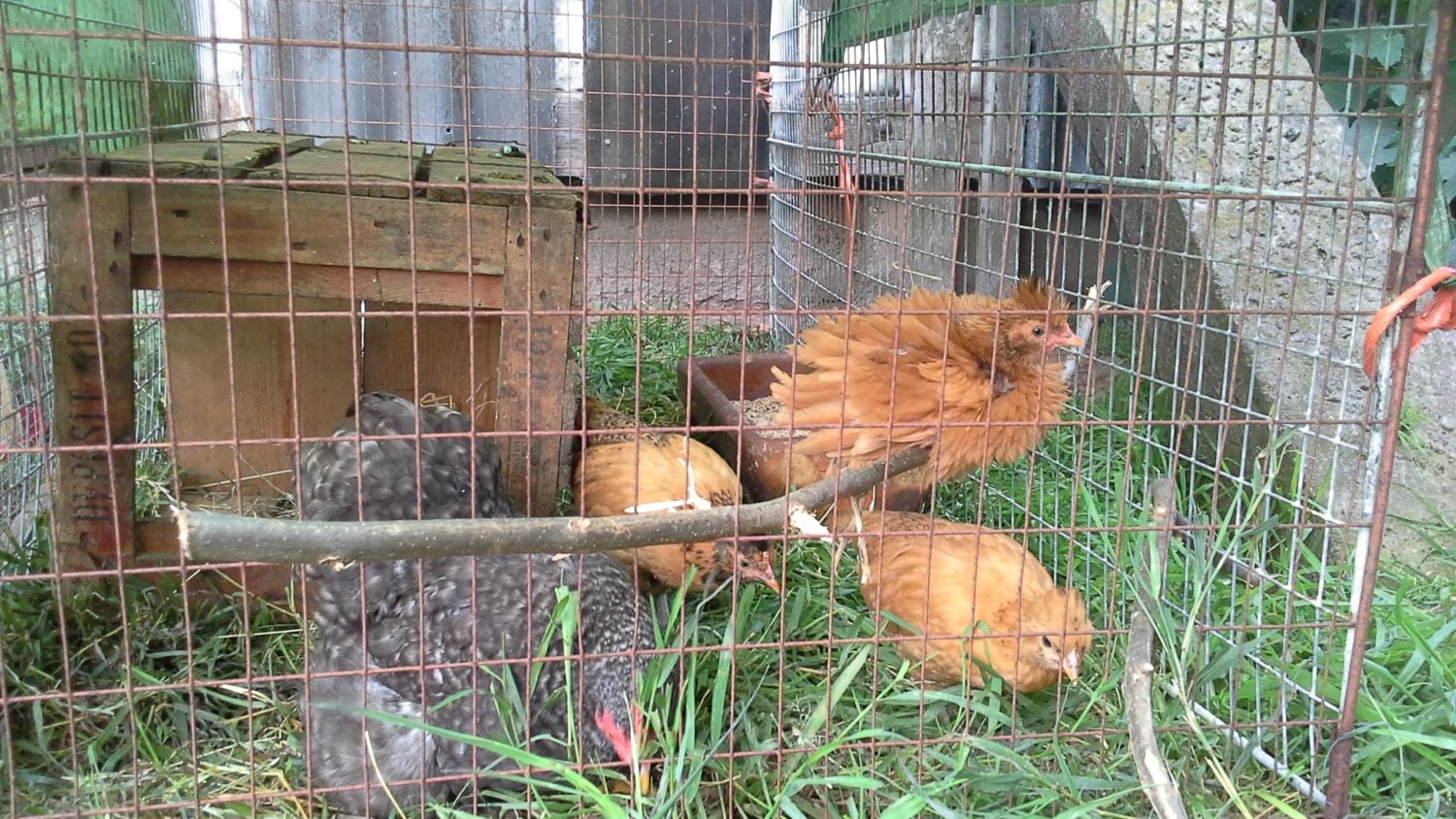 Those are cute! I have a similar cuckoo orpington. After dark, try taking your chickens off the window sill and put them in the coop. They don't have good night vision, so will stay there until morning. Easier to block them in with a board or some wire until you get door fixed.