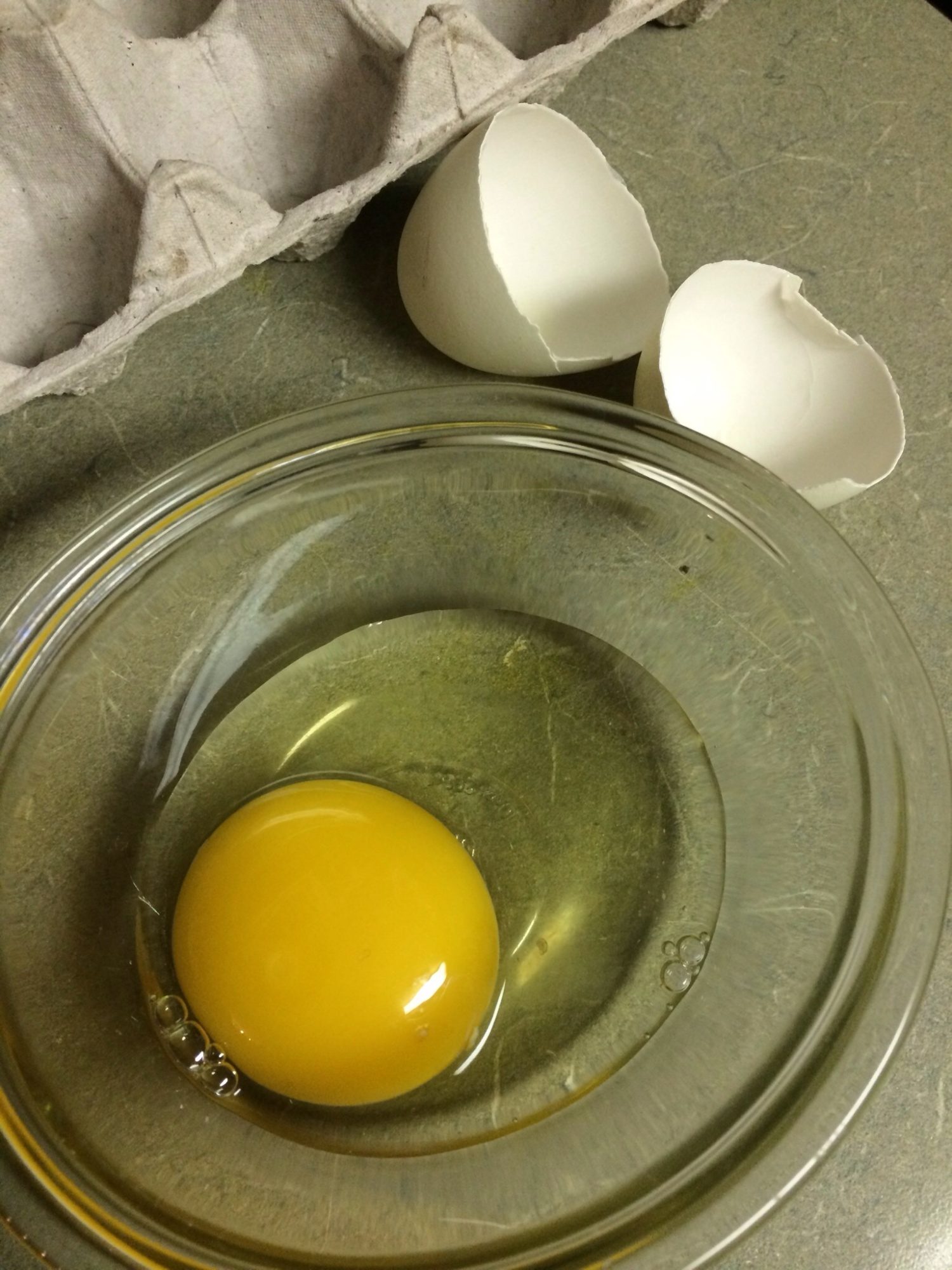 One was just a smidge cracked. I was tempted to fix, but Sally said to trash it. So I cracked it. Not scrambled! Looks great!