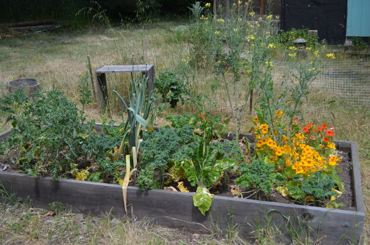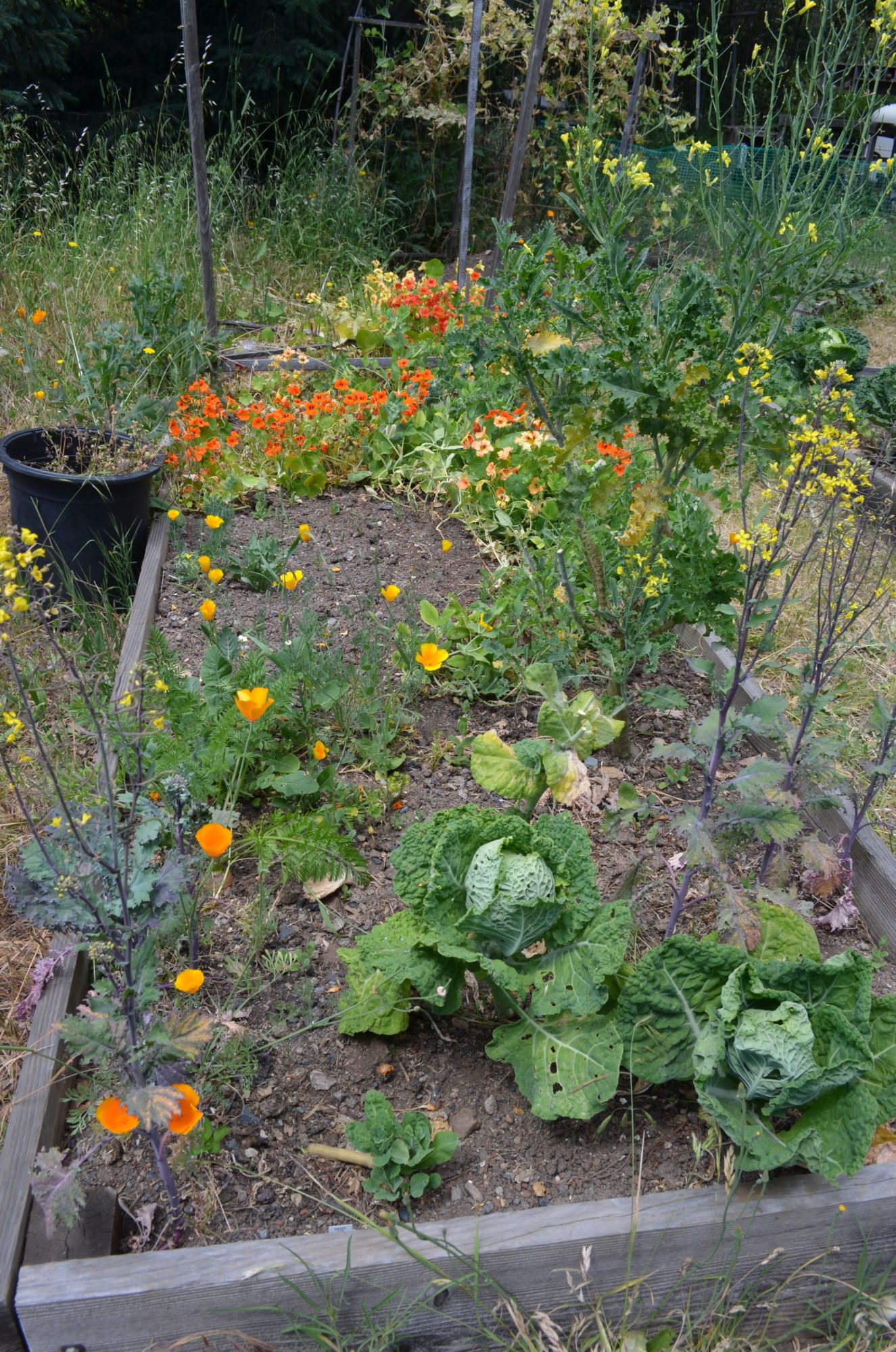 Bed 3- I let the kale go to flower for the bees. I lot more to clear, but not sure what to grow here now.