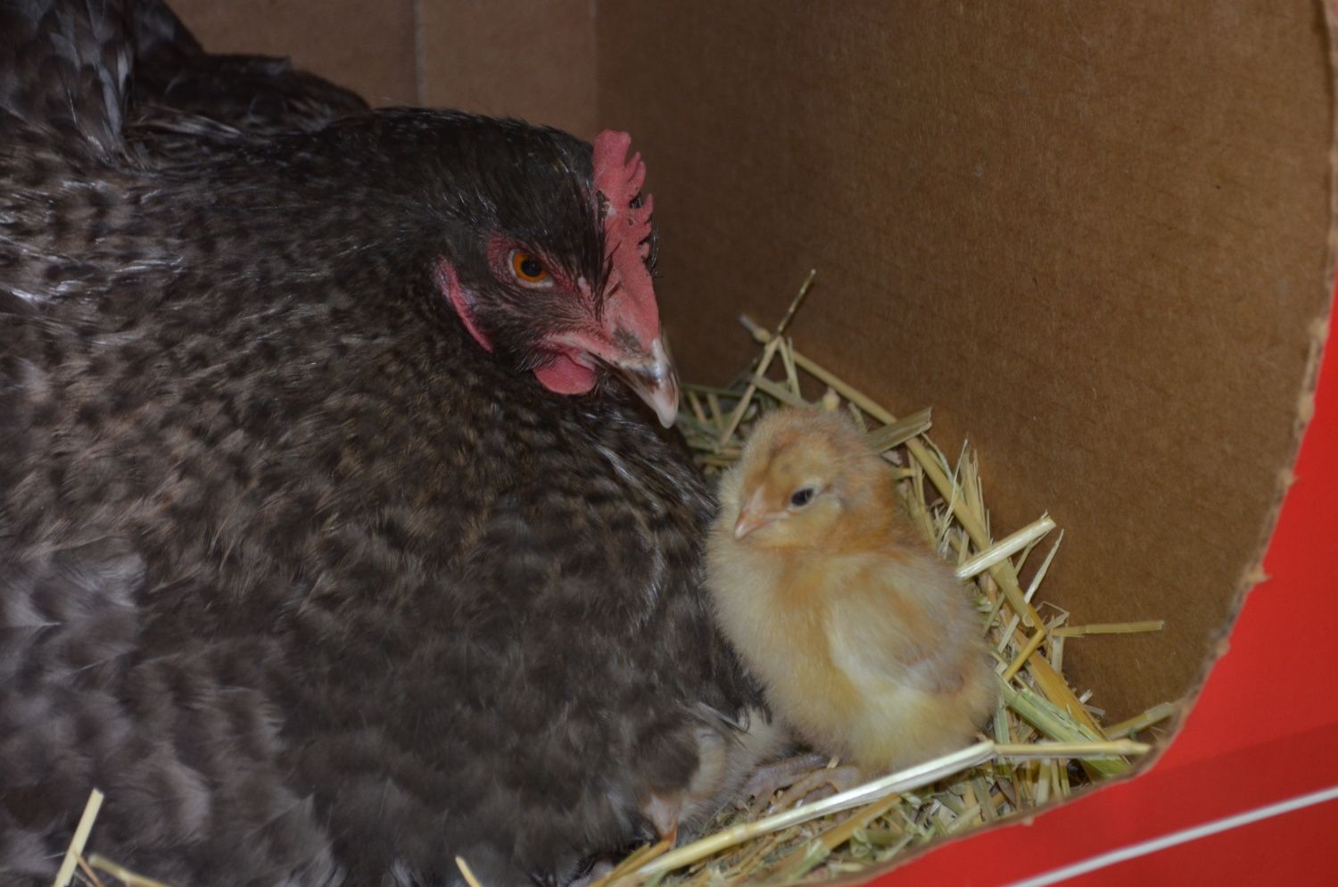 I've tried to do this 3 other times with different hens, and failed every time.I finally figured out I wasn't waiting long enough in the broody cycle. Buster is way overdue. She was so sweet with them.