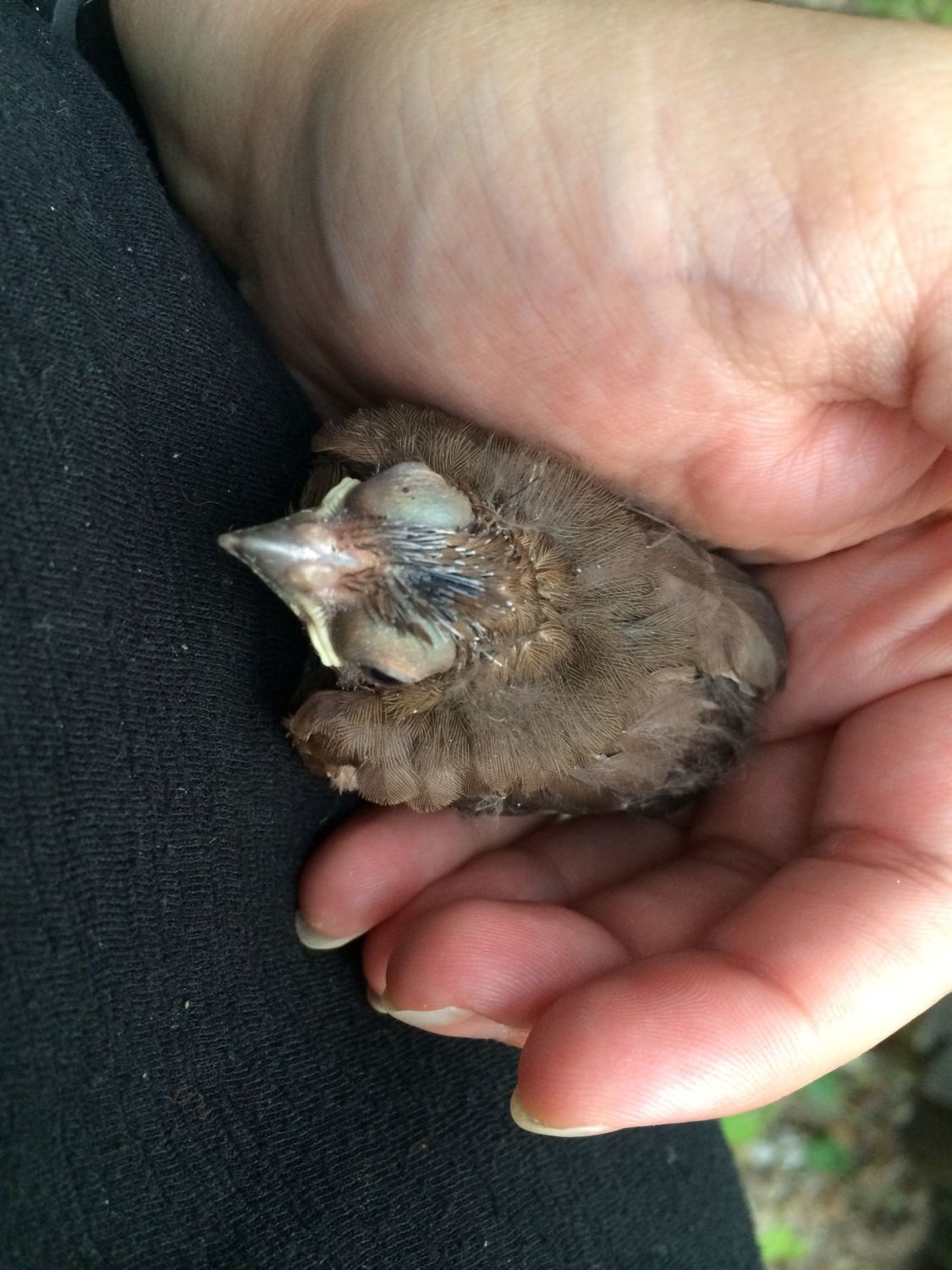 There was a nest pretty close by, so I put it in that one. The mama was paying attention to us. I'll check on them in a bit.