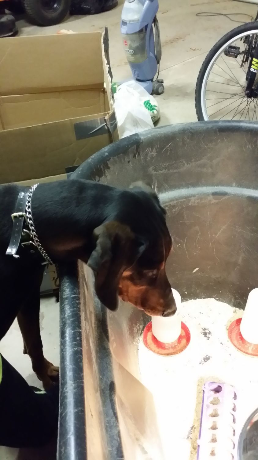 Eldest sons dog Guinness, we are babysitting until he can get a place to live. He is 104 lb black & tan houndog.