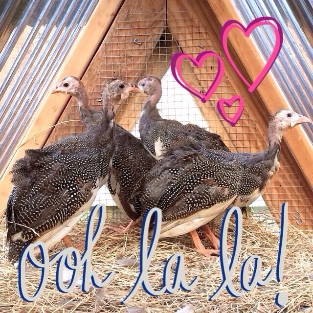 Got the guineas moved to the tractor! And the young chickens moved to the ugly tractor, for the night. And I made a picture for the guineas.
