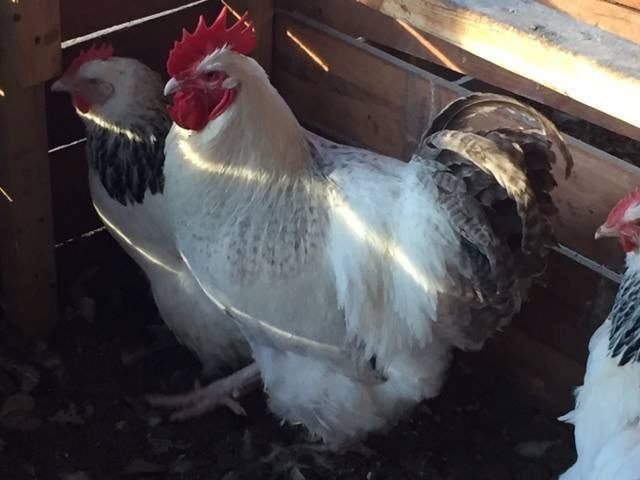 These are pictures of the parents of my yellow chicks. He calls it a white Colombian project. Orpington. These are the eggs I won in the auction.