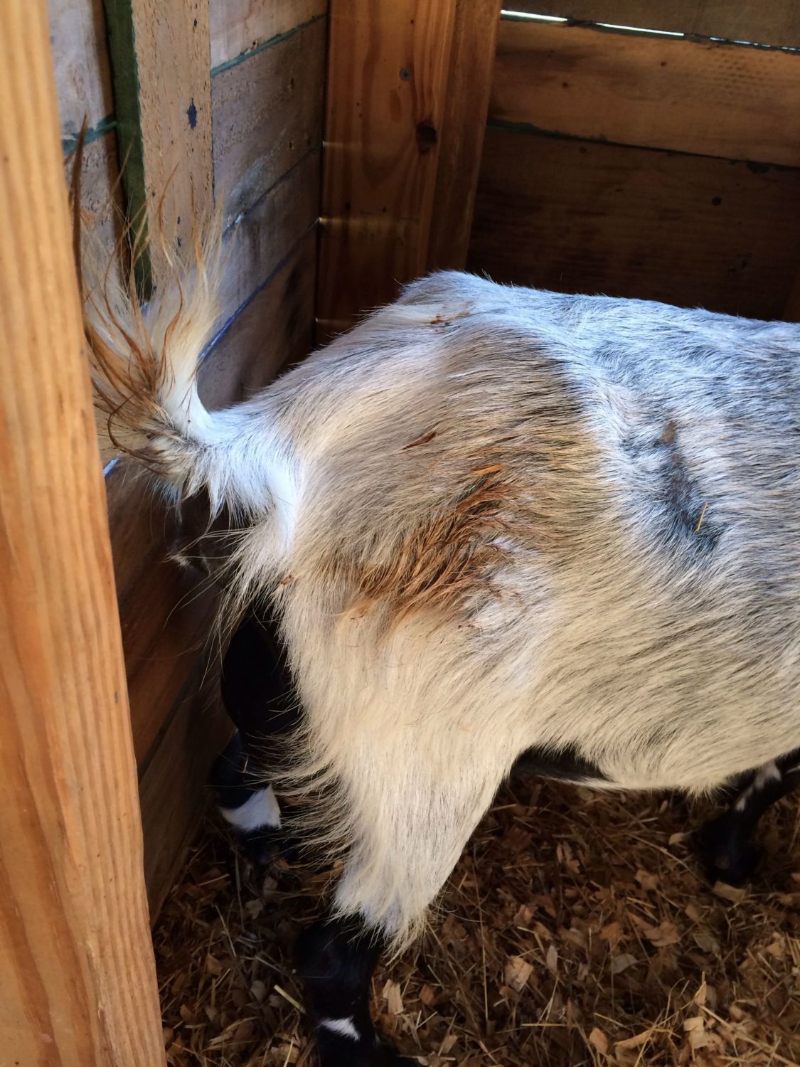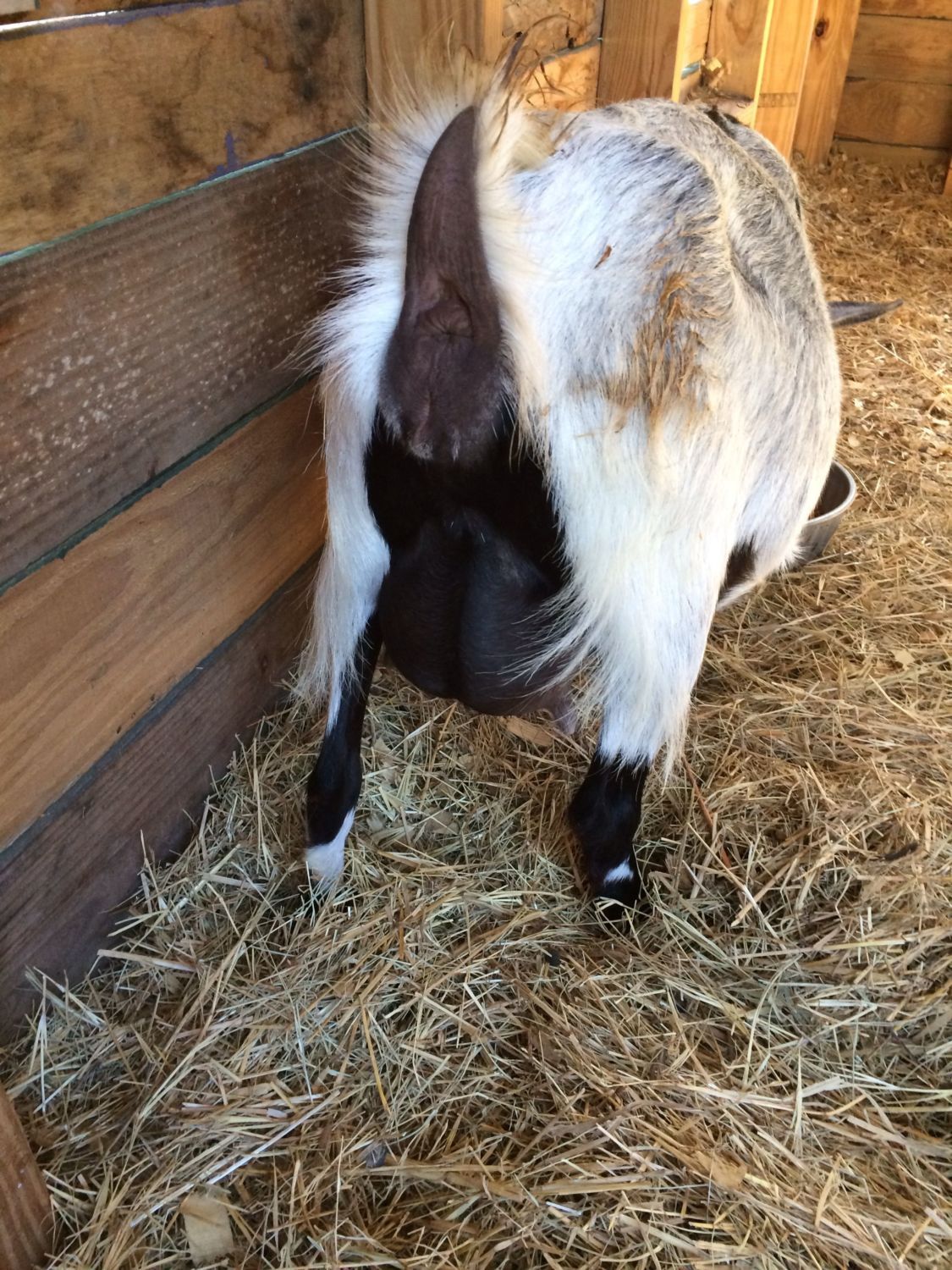 She is really pouched out there . and is that blood or did her water break ? She is eating ! LOL do you have that molasses ?