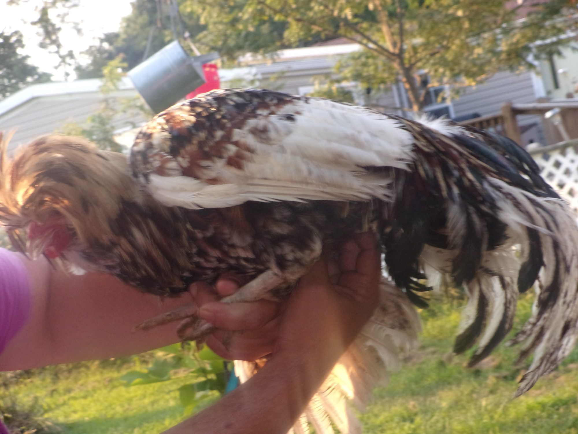 Quote: After seeing the hole in CB's ankle, I'd be tempted to twist that froufy head right off.But since you have been trying for 3 years, and the chances of getting another rooster are pretty slim, I would see if I could figure out a way to keep him or figure out what is triggering the attacks and try to eliminate the trigger. He always goes for feet? Not heads? Wrap your feet with plastic bags (to hide the shoes??) or rig up some protection. Wrap legs in some old carpet pieces. Boots like Linda said. I've never been attacked by a rooster, so not sure what that spur can get through. CB needs some leather chaps or shin guards or something. Feed bags and duct tape? Split a couple of corks and glue them over the spurs?![]()
