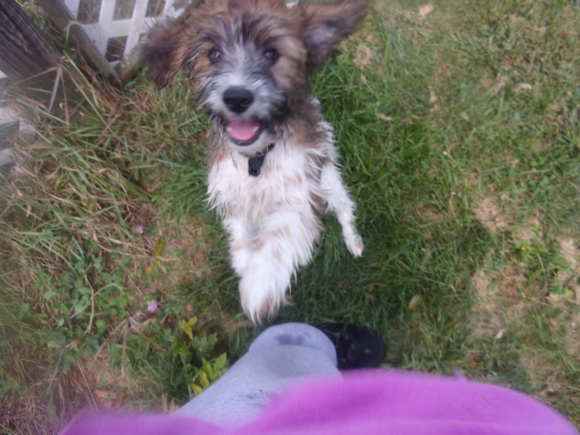 its tricolored . Long hair . I wouldnt call it curly. fluffy