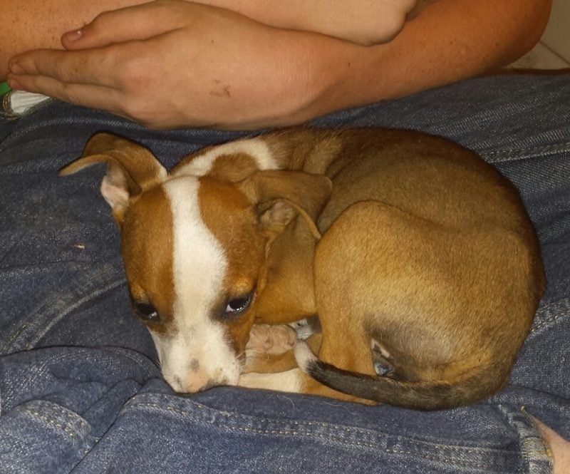 Well, I *was* headed that way - but as I went through the kitchen to turn off lights I passed the back door and saw this little refugee on the porch....... We've walked the property and checked the ditch line up and down the road a fair bit and found no others or any mama dog looking for her, so looks like she'll be taking up residence in the master bath (my go-to quarantine room for all foundlings - sad that we use it often enough that it's routine at this point). Animal control won't be back in the office or reachable for pick-up until Monday morning. Poor thing is so nervous and timid, but she sure took a shine to DS (that's his lap she's in), she had a little food and a drink and curled up in his lap and was out like a light.
