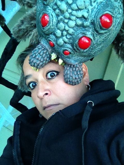 Love your giant spider. We try not to kill spiders either, but Henry cat hunts them mercilessly. Guess it ok... less webs to clean up.