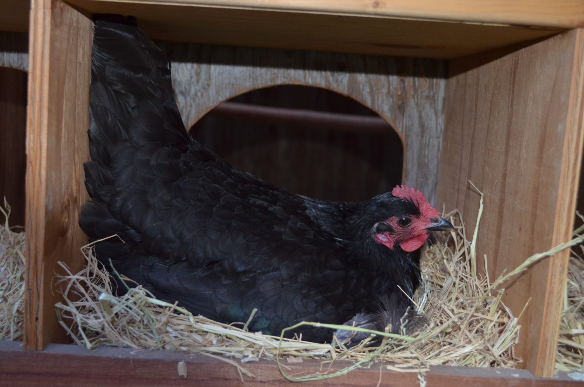 Well, that night, in the dark, I carefully put the gently peeping chicks under the dozing hen. Within minutes, my sweet Matilda woke from her sleeping broody stupor. I waited to hear the loving broody mama clucks. I was so excited for her!
